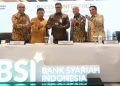 Direktur Risk Management Grandhis H.Harumansyah (paling kiri), Wakil Direktur Utama Bob T.Ananta (dua dari kiri), Direktur Finance & Strategy Ade Cahyo Nugroho (empat dari kiri), Direktur Sales & Distribution Anton Sukarna (paling kanan) saat menyampaikam kinerja Triwulan III di Kantor Pusat BSI (29/10). PT Bank Syariah Indonesia Tbk (BSI) mampu membukukan kinerja yang kuat pada Triwulan III 2025 dengan perolehan laba Rp5,57 triliun. Rerata indikator kinerja keuangan BSI tumbuh dobel digit di atas industri antara lain dikontribusi bisnis bullion bank yang diresmikan Presiden Prabowo 26 Februari 2025.