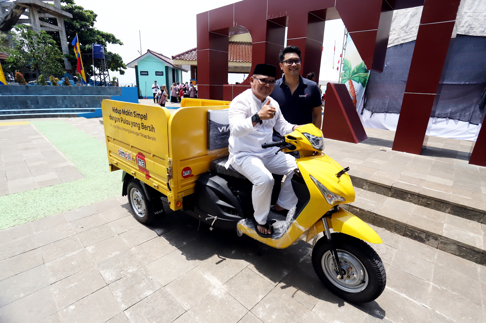 SVP Head of Region Inner Jakarta Indosat, Shatya Framudia, menyerahkan bantuan CSR berupa motor gerobak sampah kepada warga di Pulau Untung Jawa, Kepulauan Seribu, Sabtu (14/2). Bantuan ini merupakan bagian dari komitmen Indosat dalam mendukung pemberdayaan masyarakat sekaligus menjaga kebersihan lingkungan.