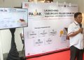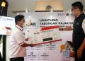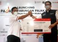 Direktur Ritel dan Syariah, Babay Parid Wazdi (kiri) memberikan simbolis Sertifikat Kepemilikan Tabungan Pajak kepada Wakil Kepala Badan Pendapatan Daerah Provinsi DKI Jakarta, Elvarinsa pada acara Launching Tabungan Pajak Bank DKI di Jakarta, (30/3).