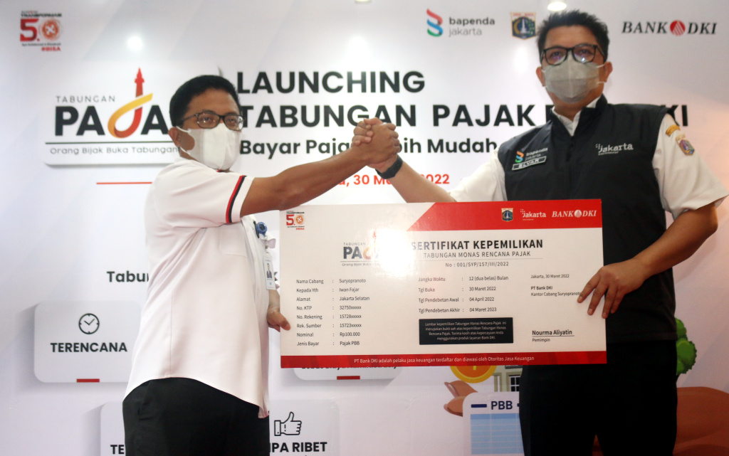 Turut mendukung upaya penerimaan pendapatan daerah melalui pajak, pada tahun 2021, transaksi pembayaran pajak melalui e-Channel Bank DKI mencapai 142 ribu transaksi dengan nominal transaksi sebesar Rp 555 Miliar. Bank DKI juga terus meningkatkan kemudahan warga DKI Jakarta dalam pembayaran pajak daerah, melalui aplikasi JakOne Mobile, ATM, EDC untuk nasabah perorangan di seluruh kantor layanan Bank DKI, dan Cash Management System untuk nasabah institusi.