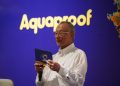 Founder PT Adhi Cakra Utama Mulia (Aquaproof) Herman Moeliana (kedua kiri) berbincang dengan (dari kiri) Commercial Director Adhel Heysa, Director Budi Moeliana dan General Manager Commerce Antony Kostka saat acara “Aquaproof 40 Tahun untuk Indonesia” di Pantai Indah Kapuk (PIK) 2, Tangerang, Banten, Minggu (16/2/2025). Acara yang juga dihadiri para Mitra Aquaproof dari seluruh Indonesia ini sebagai bentuk apresiasi Aquaproof atas dukungan masyarakat Indonesia selama 40 tahun.