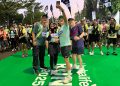 Director & General Manager of Herbalife Indonesia, Oktrianto Wahyu Jatmiko (kiri), befoto bersama Sr Manager Sales of Herbalife Indonesia, Piter (kanan), Chief Executive Presidents Team Herbalife, Faisal Solichin (kedua kanan), Executive Presidents Team Herbalife, Laela Mardiana dan peserta Herbalife Run 2025 di Indonesia Convention Exhibition (ICE), BSD City, Tangerang, Minggu, (21/09/2025).