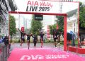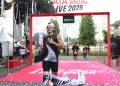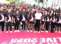 Presiden Direktur PT AIA Financial (AIA) Harsya Prasetyo (kanan) bersama Chief Marketing Officer AIA, Kathryn Parapak kiri melakukan flag off saat melepas peserta lari di garis start pada ajang lari AIA Vitality Live 2025 di Tennis Indoor Senayan, DKI Jakarta, Minggu (24/8). AIA Vitality Live 2025 merupakan manifestasi dari visi jangka panjang AIA untuk membentuk ekosistem kesehatan yang berkelanjutan di