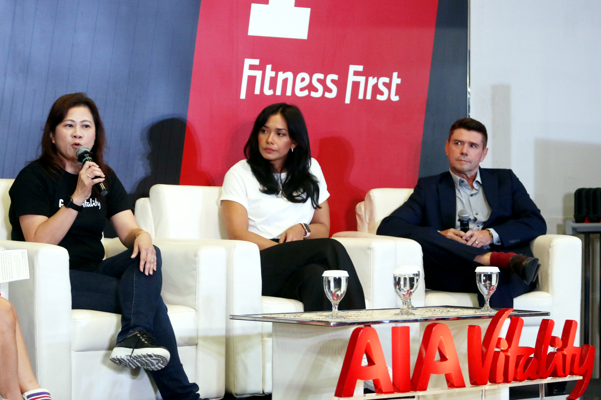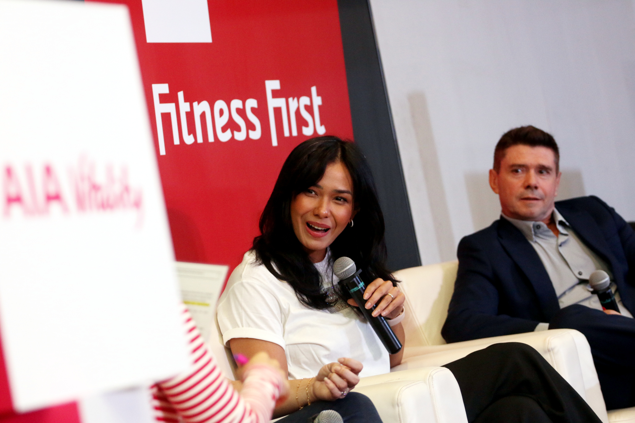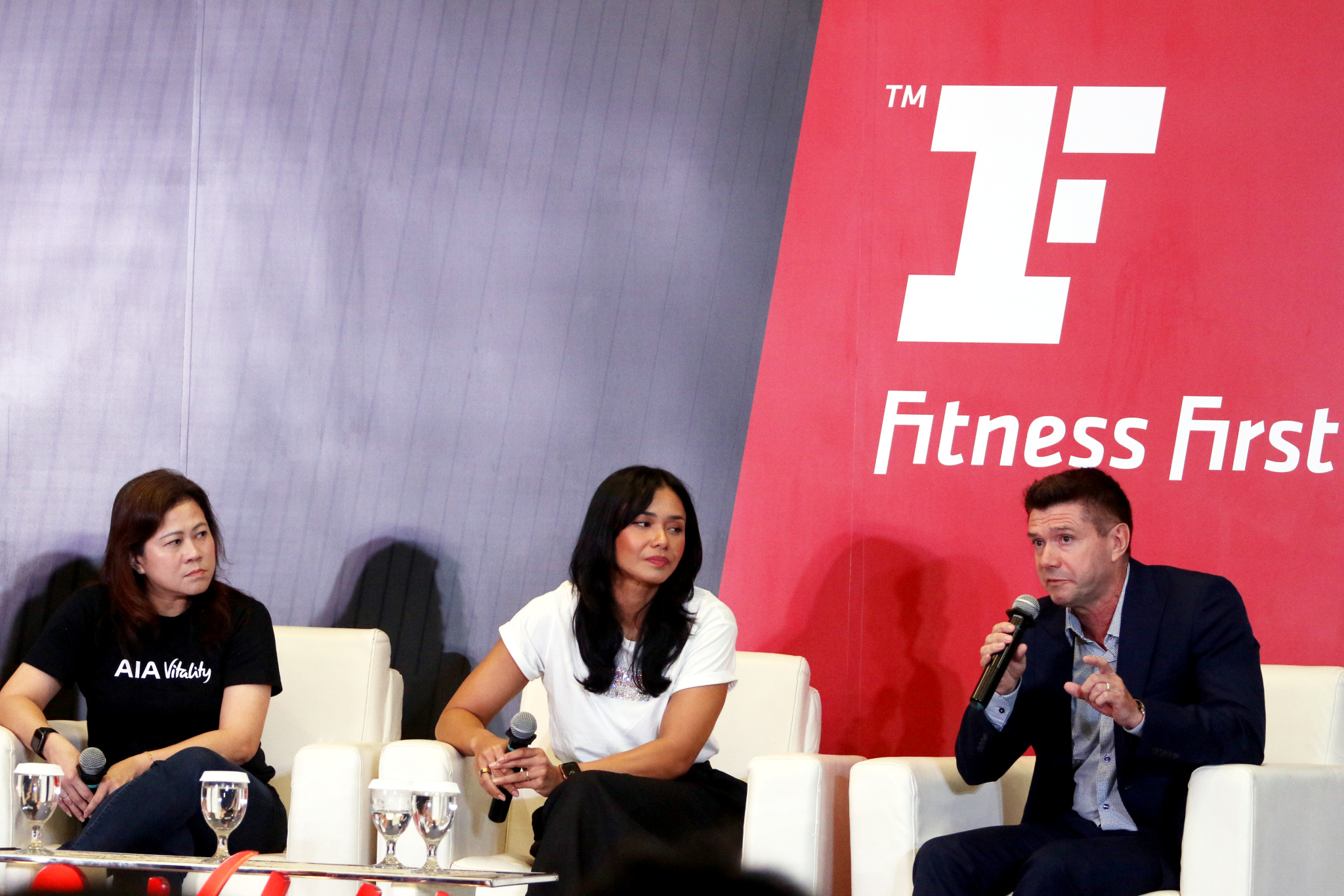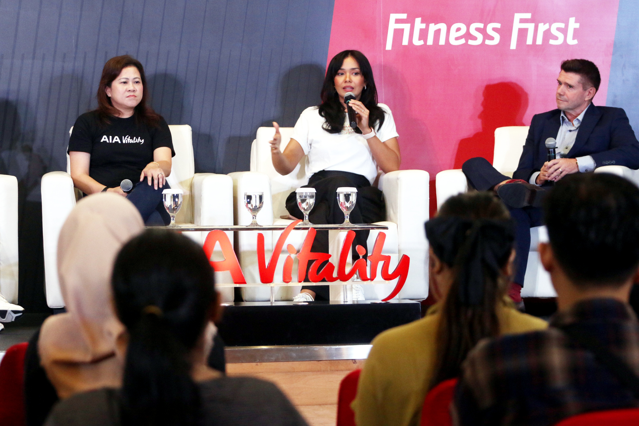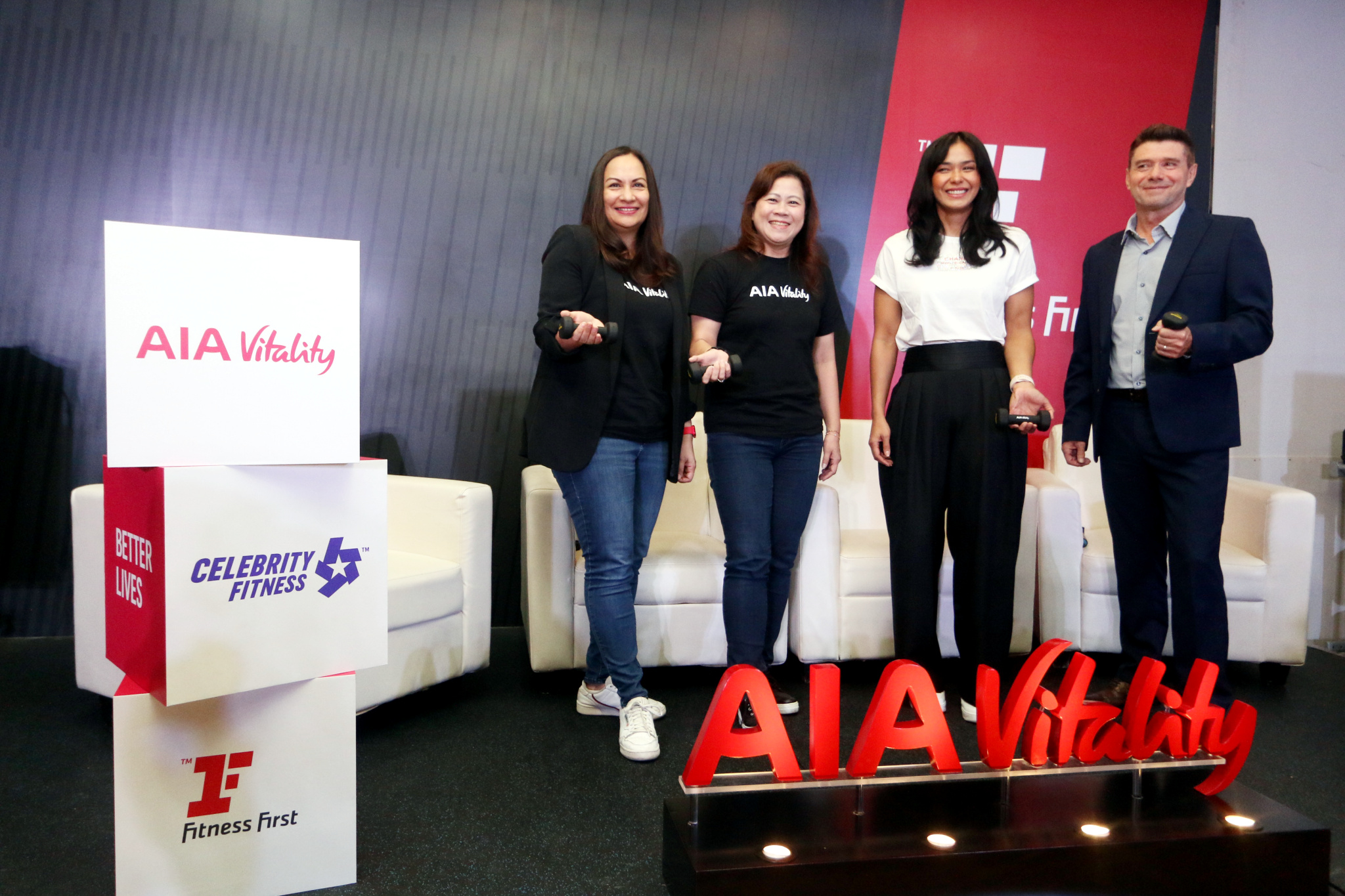 Ki-Ka: Chief Marketing Officer AIA Indonesia Kathryn Parapak, Head of AIA Vitality Jong Wie Siu, Aktris dan Health Enthusiast Adinia Wirasti, dan Chief Operating Officer Evolution Wellness David Prosser berfoto bersama di acara peluncuran fitur terbaru “Gym Partner” di aplikasi AIA Vitality kerjasama AIA dengan pusat kebugaran Celebrity Fitness & Fitness First (CF & FF) di Jakarta, 21 November 2023. Melalui kerjasama gym partner ini, member AIA Vitality yang juga merupakan member dari Celebrity Fitness dan Fitness First akan mendapatkan berbagai keuntungan seperti diskon membership fee sebesar 20%, tambahan 100 poin Vitality per kunjungan, dan 750 poin Vitality setiap kali melakukan fitness assessment di CF & FF, dengan bonus 750 poin Vitality jika hasil assessment baik dan tes kebugaran gratis. Kerjasama ini sejalan dengan komitmen AIA untuk untuk membantu nasabah mendapatkan hidup yang lebih sehat, lebih lama, lebih baik.
