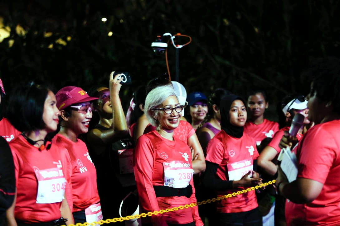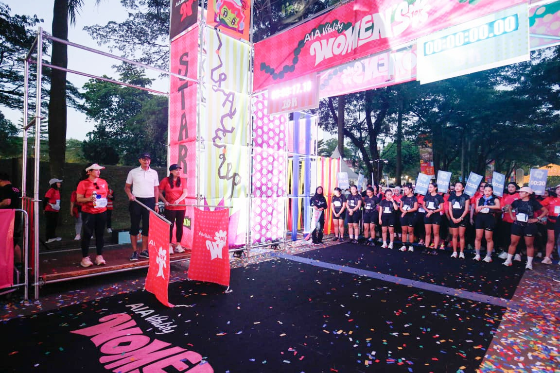 Presiden Direktur AIA, Harsya Prasetyo (tengah) bersama Chief Marketing Officer AIA, Kathryn Parapak (kanan) dan Plt Direktur Taman Mini Indonesia Indah (TMII) Ratri Paramita bersiap melakukan flag off pada ajang lari AIA Vitality Women’s 10K 2026 di TMII, Jakarta, Minggu (26/4). AIA Vitality Women’s 10K 2026 resmi kembali hadir dan digelar di TMII dengan dua kategori, yakni 5K dan 10K. Acara lari yang diikuti 4.000 peserta perempuan ini dirancang khusus untuk menginspirasi perempuan Indonesia dari berbagai latar belakang agar mulai bergerak dan menjalani hidup yang lebih sehat, aktif, serta penuh semangat. Kategori 10K hadir untuk menginspirasi dan memberdayakan perempuan agar terus melampaui batas dan menghadapi tantangan baru, sekaligus menjadi tonggak pencapaian dalam perjalanan mereka. Sementara, kategori 5K menjadi pintu gerbang bagi lebih banyak perempuan untuk memulai langkah pertama, dengan menghadirkan ruang yang inklusif dan suportif, di mana setiap perempuan didorong untuk bergerak dan bertumbuh tanpa tekanan maupun penilaian.