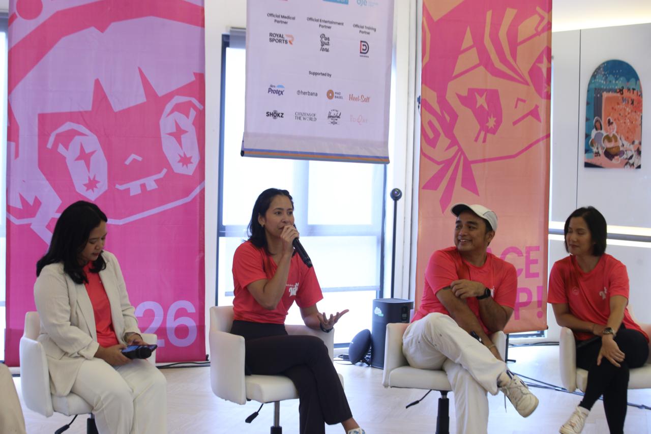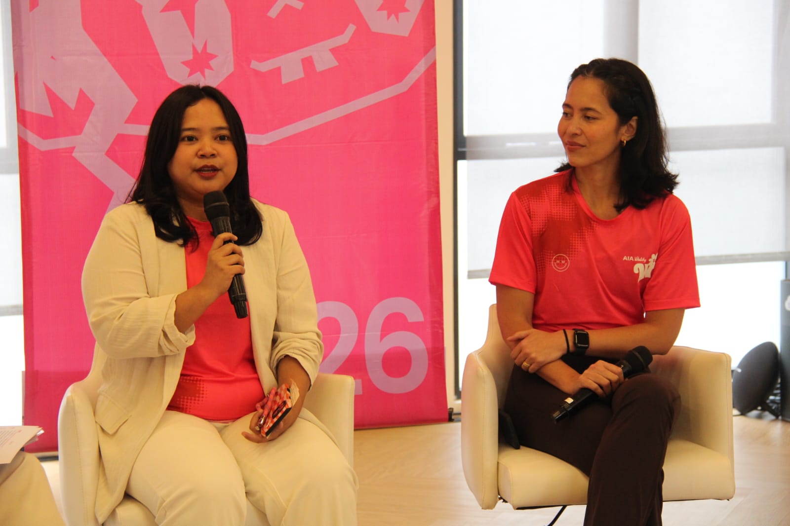 (Ki-Ka) Head Of Corporate Communincation AIA, Lia Merdekawaty, Co-Founder dari SANA Studio dan Women’s 10K, Laila Munaf, Muse AIA Vitality Women’s 10K 2026, Dipha Barus dan Vanessa Budihardja-Barus berfoto bersama memegang jersey setelah menyelenggarakan press conference AIA Vitality Women’s 10k bertema “Lace Up, Face Up” yang diadakan di Sana Studio, Jakarta, Selasa (7/4). Ajang lari tahunan AIA Vitality Women’s 10K kembali hadir untuk ke-6 kalinya dan bertepatan dengan peringatan 5 tahun AIA Vitality di Indonesia ini bertujuan untuk menginspirasi perempuan Indonesia dari berbagai latar belakang untuk mulai bergerak dan menjalani hidup yang lebih sehat. Ajang lari yang diselenggarakan pada 26 April 2026 di Taman Mini Indonesia Indah, dengan kategori 5K dan 10K serta menghadirkan program Women’s 10K Coach, Training Season, dan Sunday Run untuk menjadikan pengalaman berlari lebih personal, suportif, dan menyenangkan.
