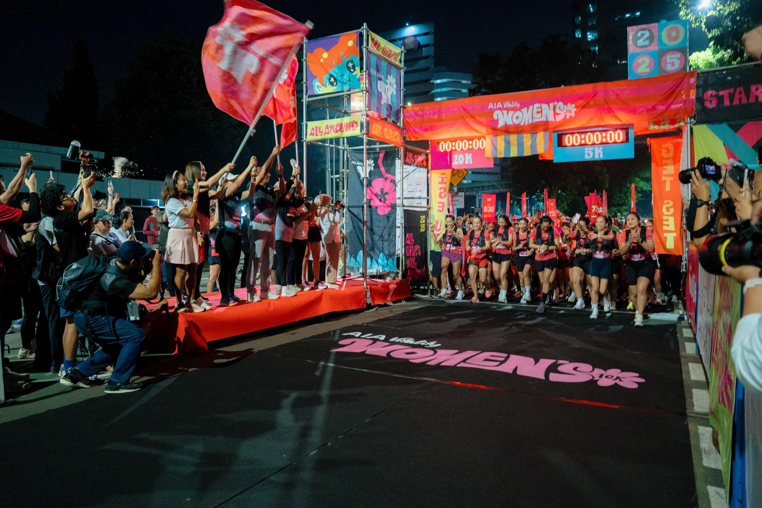 (Ki-Ka) Chief of Marketing Officer AIA Indonesia – Kathryn Parapak, Plt. Asisten Perekonomian dan Keuangan Sekda Prov. DKI Jakarta – Suharini Eliawati, Walikota Kota Adm. Jakarta Selatan – Dr. Munjirin, S.Sos, M.Si, Kepala Biro Kerja Sama Daerah Setda Prov. DKI Jakarta – Marulina Dewi, Co-Founder dari SANA Studio & Women’s 10K – Laila Munaf, Women’s 10K – Widya Prajanthi, melakukan flag off dalam kegiatan AIA Vitality Women’s 10K di Jakarta, Minggu (27/5). AIA kembali menggelar AIA Vitality Women’s 10K, yang sudah memasuki tahun ketiga penyelenggaraan. Kali ini dilangsungkan di Taman Kota Peruri, Blok M, Jakarta. Acara ini mengajak 3.000 perempuan untuk tetap aktif dan sehat. AIA Vitality Women’s 10K 2025 mengusung tema “All Girls All Around,” acara ini menjadi ruang inklusif bagi perempuan dari berbagai latar belakang untuk mulai berlari. Tersedia beberapa kategori lomba, mulai dari 5K dan 10K, memberikan kesempatan bagi lebih banyak perempuan, termasuk mereka yang baru memulai perjalanan olahraga mereka, untuk berpartisipasi dan merasakan manfaat dari gaya hidup aktif.