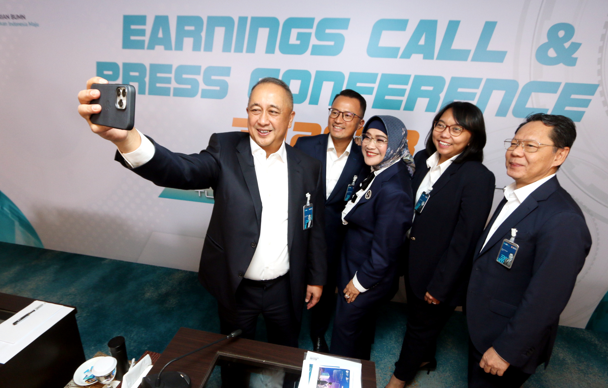 Direktur Utama BNI Royke Tumilaar (kiri) bersama (dari kiri) Direktur Wholesale & International Banking BNI Silvano Rumantir, Wakil Direktur Utama BNI Adi Sulistyowati, Direktur Finance BNI Novita Widya Anggraini, dan Direktur Risk Management BNI David Pirzada saat melakukan swafoto disela Press Conference BNI dengan tema “Akselerasi Pertumbuhan Kredit dan Laba, Dengan Tetap Mengedepankan Aspek Kehati-hatian dalam Manajemen Risiko dan Likuiditas di Tengah Dinamika Makro Ekonomi dan Geopolitik” di Grha BNI, Selasa (31/10/2023). Terkait kondisi global dan peningkatan risiko geopolitik,