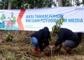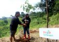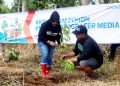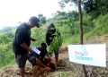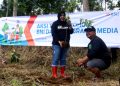 (Ki-ka) Pengelola Hutan Organik Megamendung Yuhan Subrata dan Perintis Hutan Organik Megamendung Rosita Istiawan saat menanam tanaman keras di kawasan Hutan Organik. Di kawasan tersebut melalui CSR BNI telah ditanam 15.000 pohon selama kerjasama dengan Hutan Organik Megamendung sejak 2018. Penanaman pohon oleh Rosita dan Yuhan pada Minggu (24 April 2022) bersamaan dengan Hari Bumi Internasional yang jatuh pada tanggal 22 April.