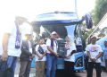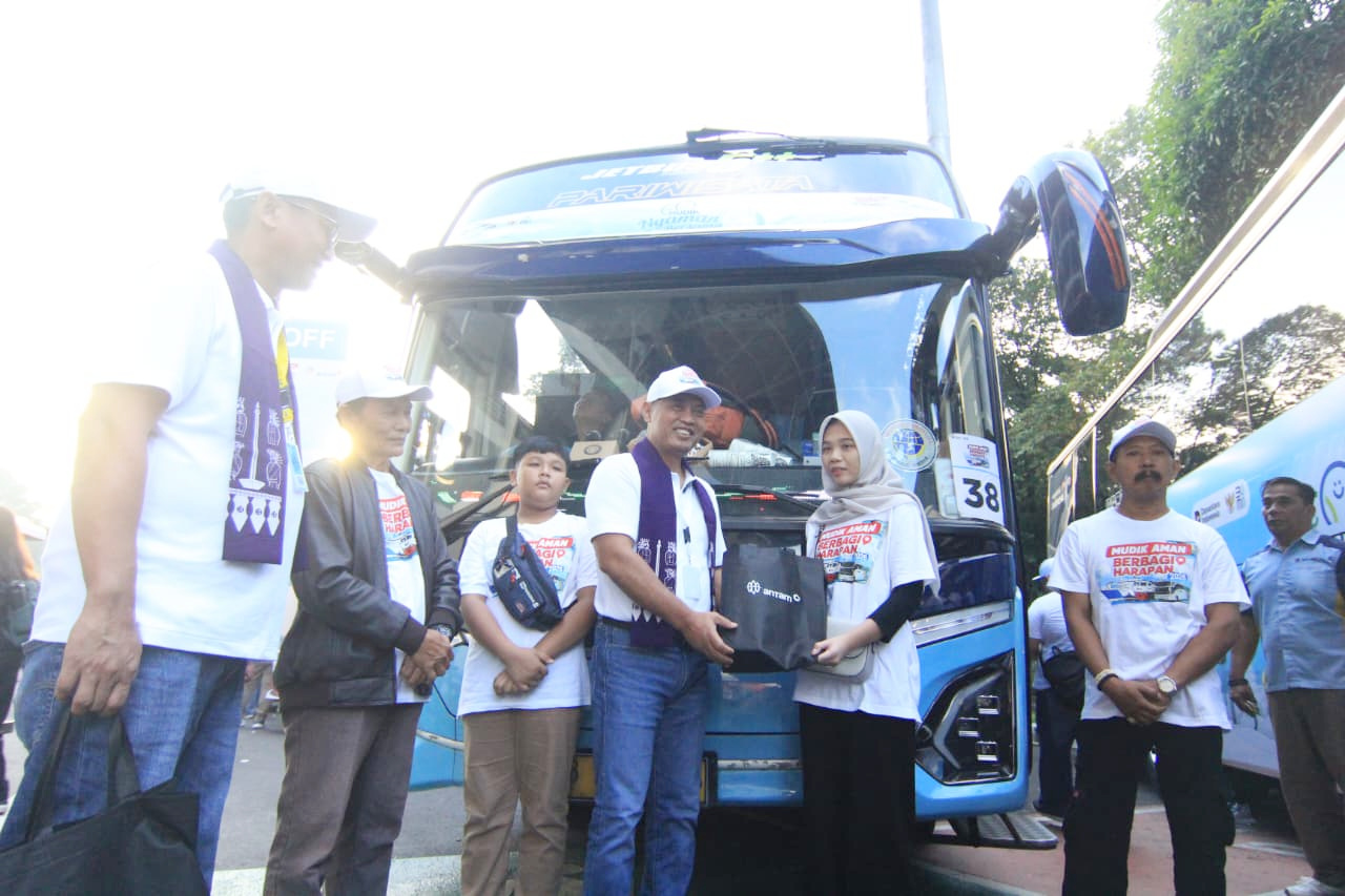 Direktur Utama ANTAM, Untung Budiharto, bersama Corporate Social Responsibility & External Relations Division Head, Yulan Kustiyan, secara resmi melepas peserta program Mudik Nyaman Bersama 2026.
