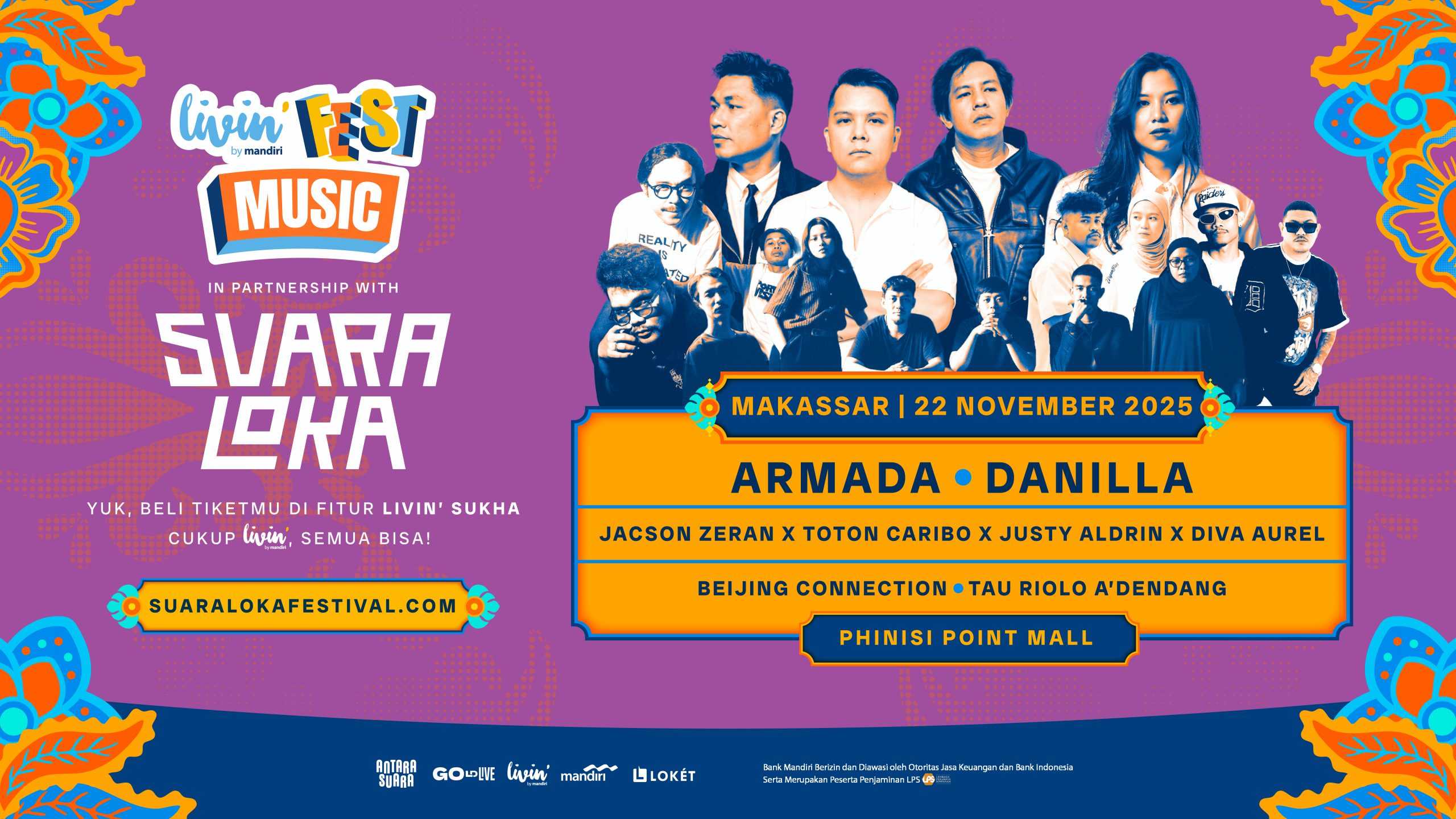 Suara Loka Makassar akan digelar pada 22 November 2025 di Phinisi Point Mall Makassar menghadirkan line-up yang merepresentasikan warna musik Indonesia antara lain Armada, kolaborasi musisi Indonesia Timur (Justy Aldrin x Jacson Zeran x Toton Caribou x Diva Aurel), Tau Riolo A’Dendang, Beijing Connection.