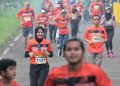 Saat melepas Peserta lari Atma Jaya Run di Tangerang, Banten, Minggu (31/7/2022). Atma Jaya Run yang diikuti 850 peserta dari berbagai daerah di Indonesia tersebut selain mengajak masyarakat untuk hidup sehat juga menunjukkan kepedulian terhadap sesama melalui pemberian donasi bagi pendidikan generasi muda Indonesia. Foto/Helmi Afandi.