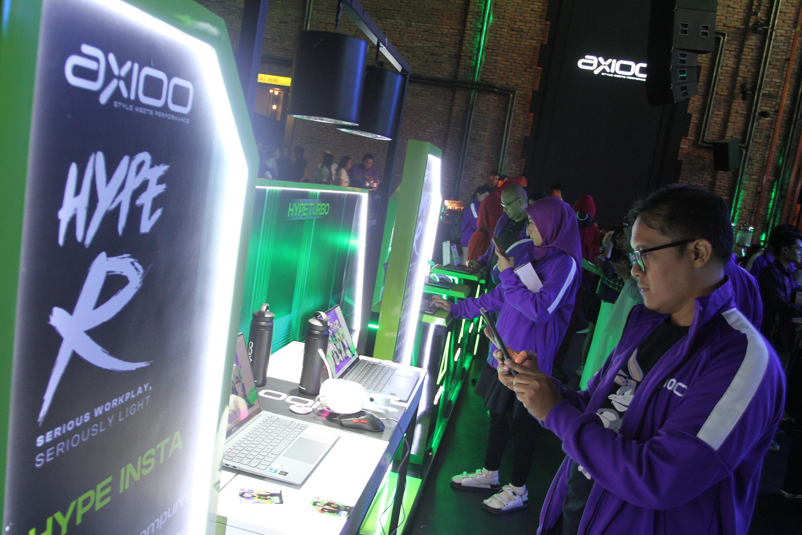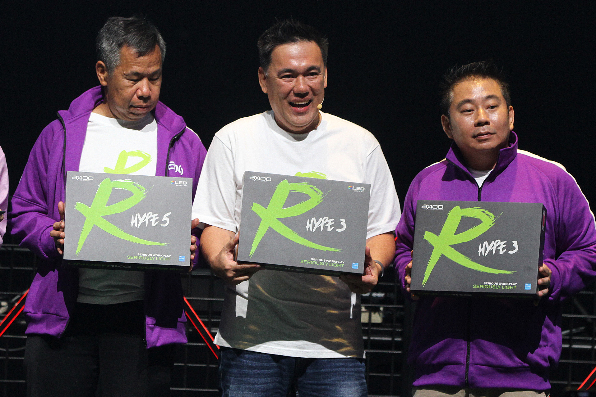 (kiri-kanan) Axioo Indonesia, Samuel Lawrence, Vice President Business Development & Strategic Partnership PT Tera Data Indonusa Tbk, Timmy Theopelus dan President Director PT Tera Data Indonusa Tbk, Michael Sugiarto, menunjukkan laptop Axioo Hype R disela peluncurannya di Jakarta, Jumat (14/2/2025). Axioo resmi meluncurkan laptop baru Hype R. Laptop dengan fisik super ringan di bawah 1 Kg. Laptop yang memiliki layar berpanel OLED dengan ukuran 14 inci dan resolusi FHD+ ini diklaim mendukung tinggat akurasi warna dan kontras yang tinggi dan tajam.