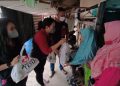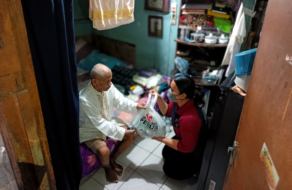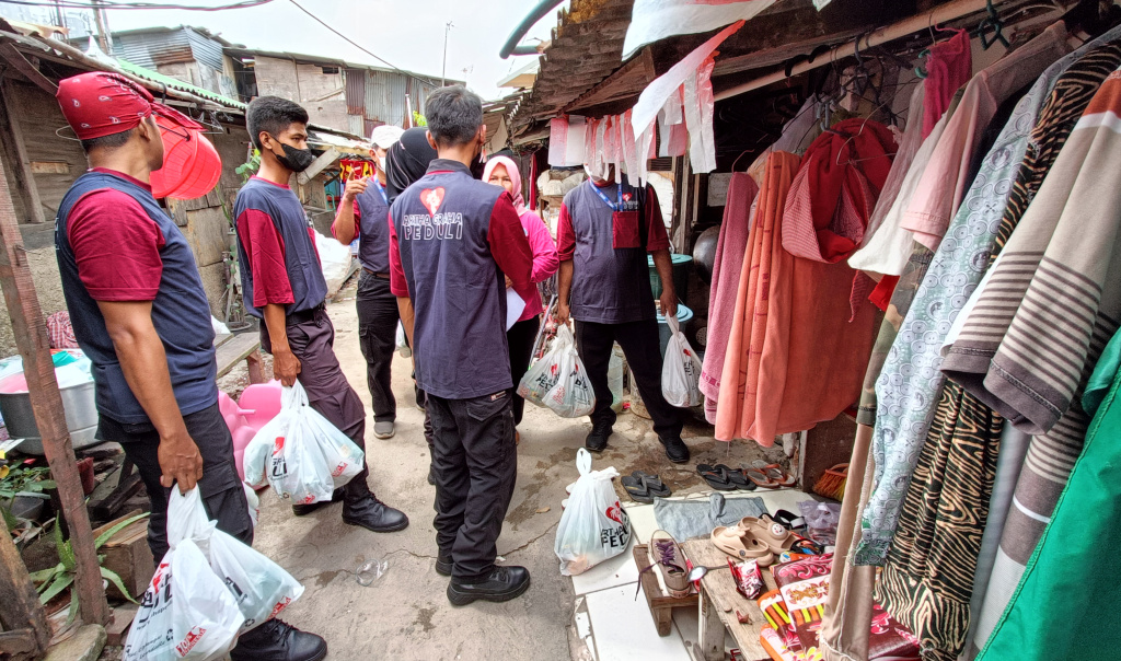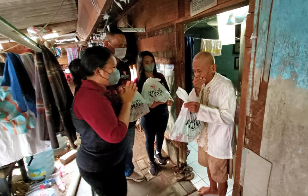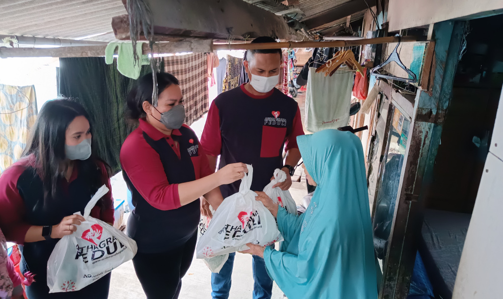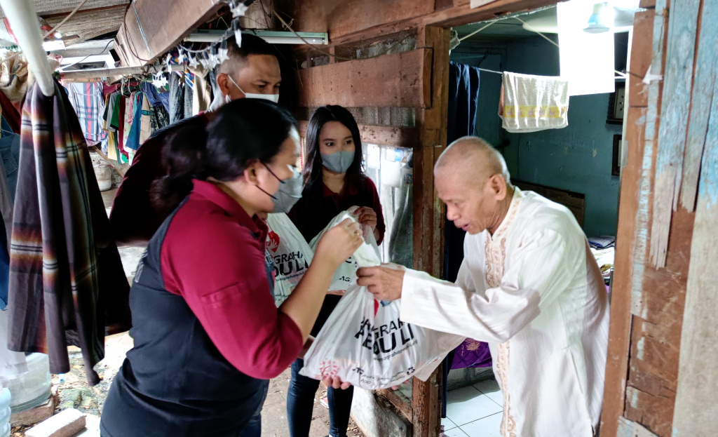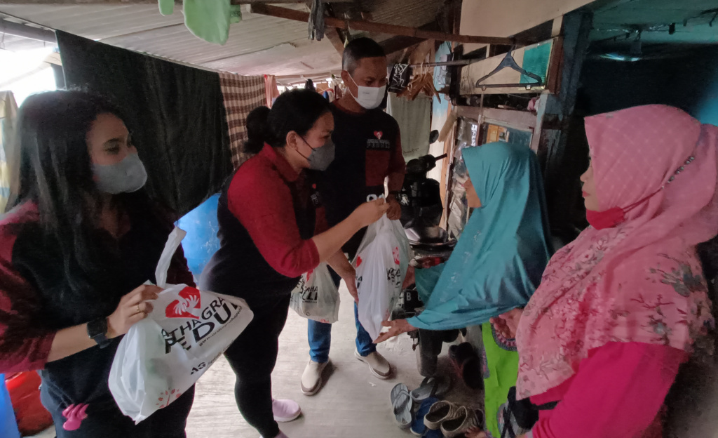 Koordinator Lapangan Sembako AGP dari unit usaha PT Bank Artha Graha Internasional Tbk Lidya Sinaga secara langsung memberikan bantuan paket sembako gratis kepada masyarakat duafa di Pulobesar Sunter Jaya, Jakarta Utara, Senin (12/9/2022). Artha Graha Peduli (AGP) menyiapkan 50 ribu paket sembako gratis untuk masyarakat terdampak kenaikan harga BBM bersubsidi yang membutuhkan khususnya para disabilitas, warga kurang mampu, dhuafa, lansia, yatim piatu yang bermukim di radius 5 km dari unit usaha Artha Graha Grup di seluruh Indonesia. Selain itu AGP juga memberikan bantuan langsung tunai (BLT) kepada 30 ribu karyawan Artha Graha Grup serta Artha Graha Network dengan gaji UMR.