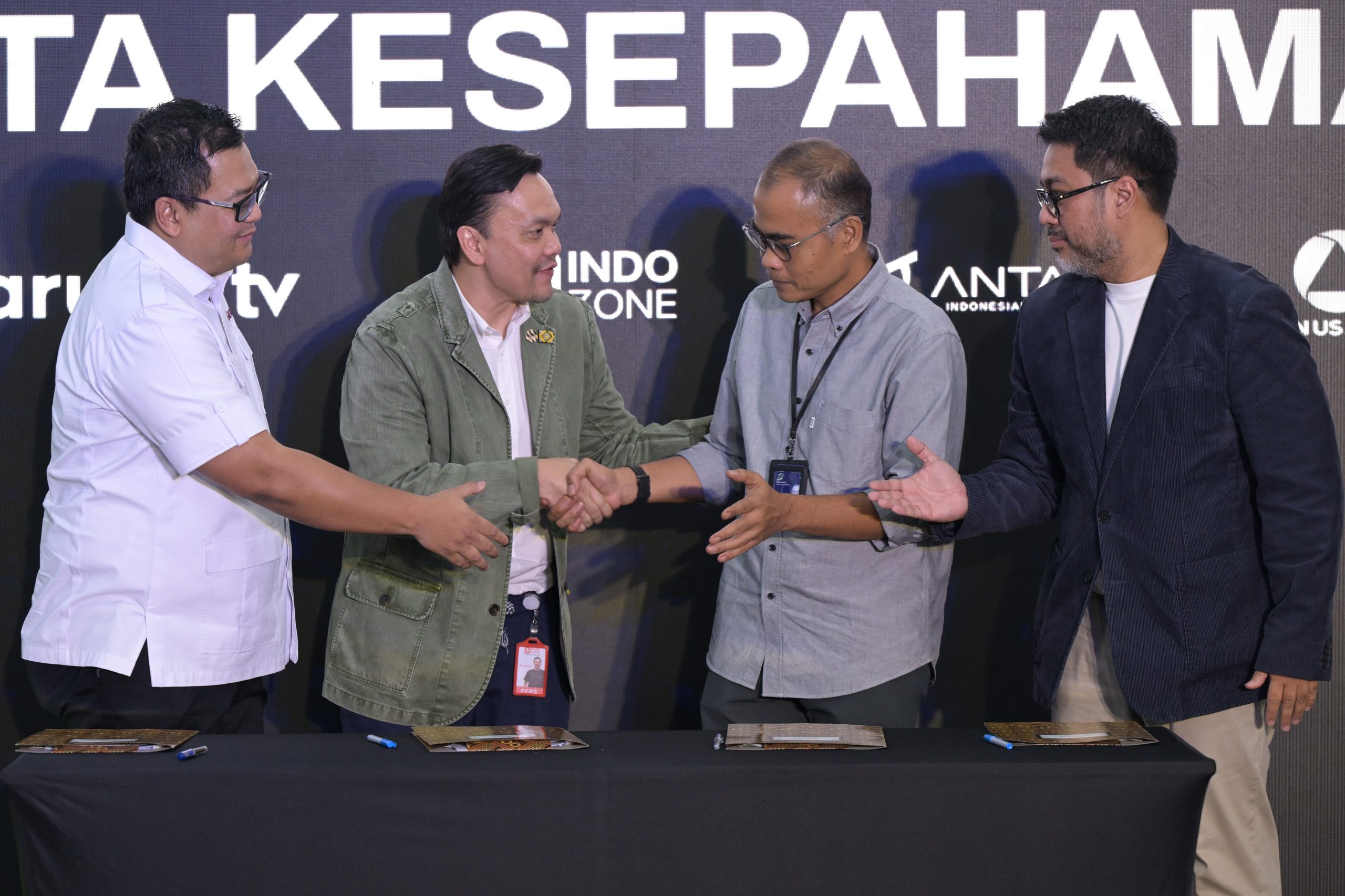 JAKARTA,Cobisnis.com – ANTARA, Garuda TV, Indozone, dan ON US Asia resmi menjalin kolaborasi melalui penandatanganan Nota Kesepahaman (MoU) di ANTARA Heritage Center, Jakarta pada Senin (16/6). Kerja sama ini bertujuan menciptakan ekosistem informasi yang sehat, kredibel, dan bertanggung jawab di tengah tantangan disinformasi yang semakin kompleks.