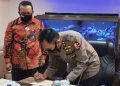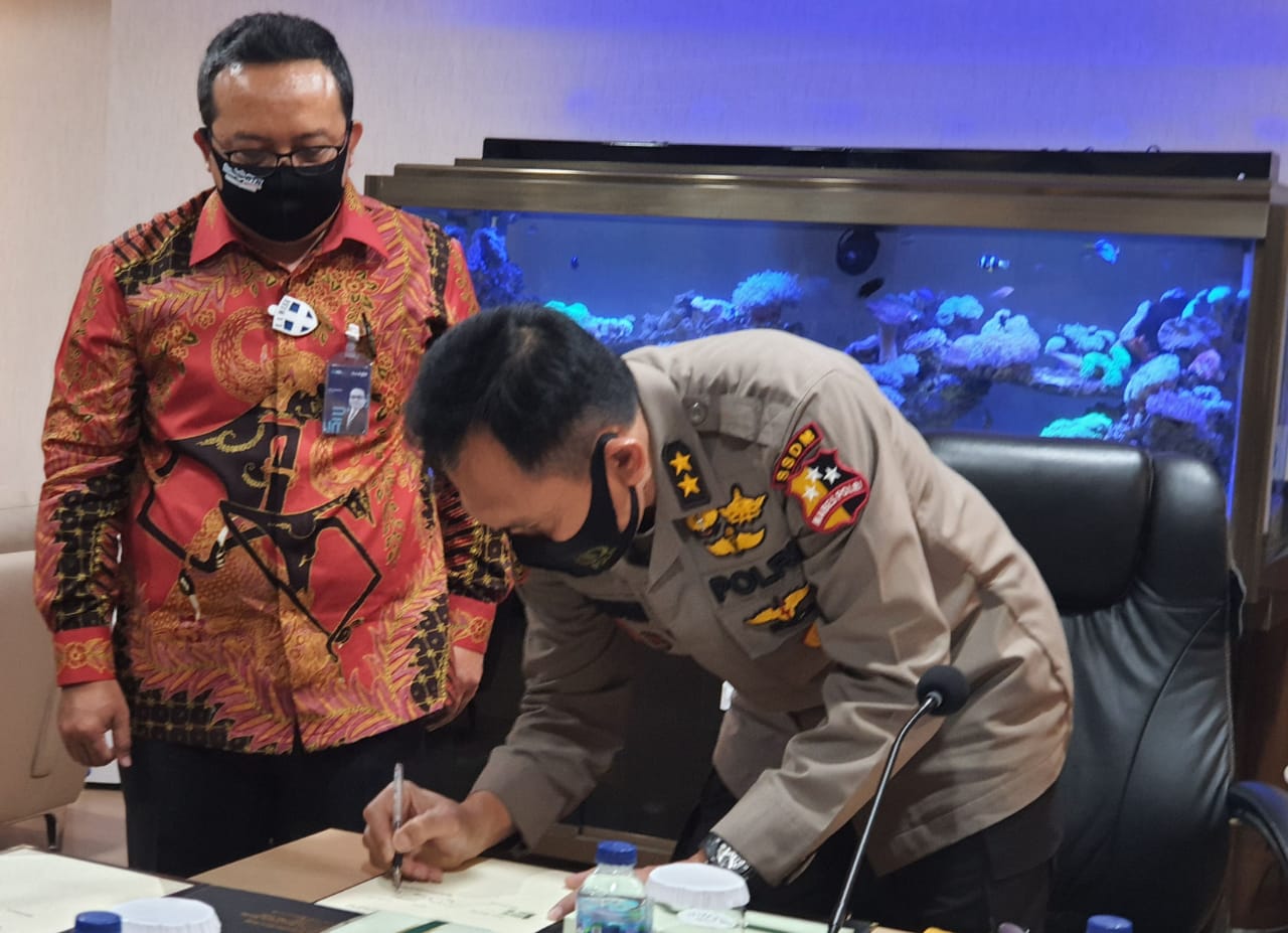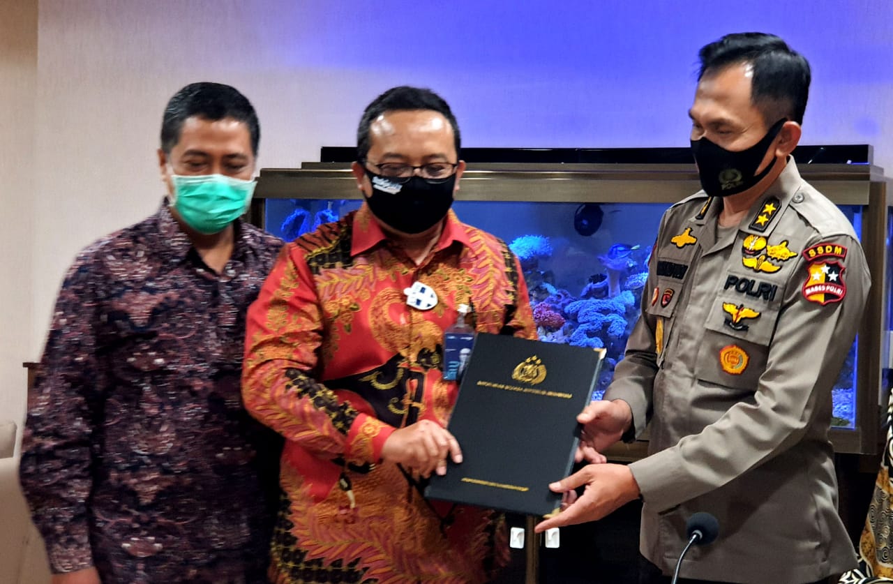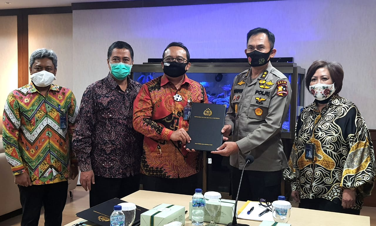 Direktur Operation, IT & Digital Banking PT Bank Tabungan Negara (Persero) Tbk. Andi Nirwoto (tengah) menujukkan Perjanjian Kerjasama yang telah ditandatangani bersama Asisten Kapolri Bidang SDM Irjen Pol Drs Sutrisno Yudi Hermawan (kedua dari kanan) didampingi oleh Direktur Consumer & Commercial Lending Bank BTN,Hirwandi Gafar (Kedua dari kiri) dan Kepala Divisi Subsidized Mortgage Lending Division Bank BTN M. Yut Penta (kiri) dan Executive Vice President Nonsubsidized Mortgage & Consumer Lending Division (NSLD) BTN Suryanti Agustinar (kanan) di Jakarta, Rabu (19/8). Bank BTN dan Kepolisian Negara Republik Indonesia (Polri) menjalin kerjasama bidang Pemanfaatan Jasa Layanan Perbankan yang melingkupi diantaranya pemberian fasilitas KPR baik subsidi maupun non subsidi, cash management, payroll, kredit konsumer dan lain sebagainya. Kerjasama tersebut merupakan strategi Bank BTN mempermudah akses kepala jajaran Polri untuk mendapatkan pembiayaan dan layanan perbankan yang berkualitas.