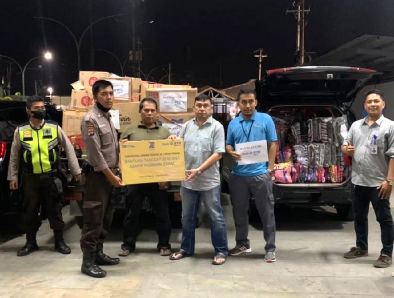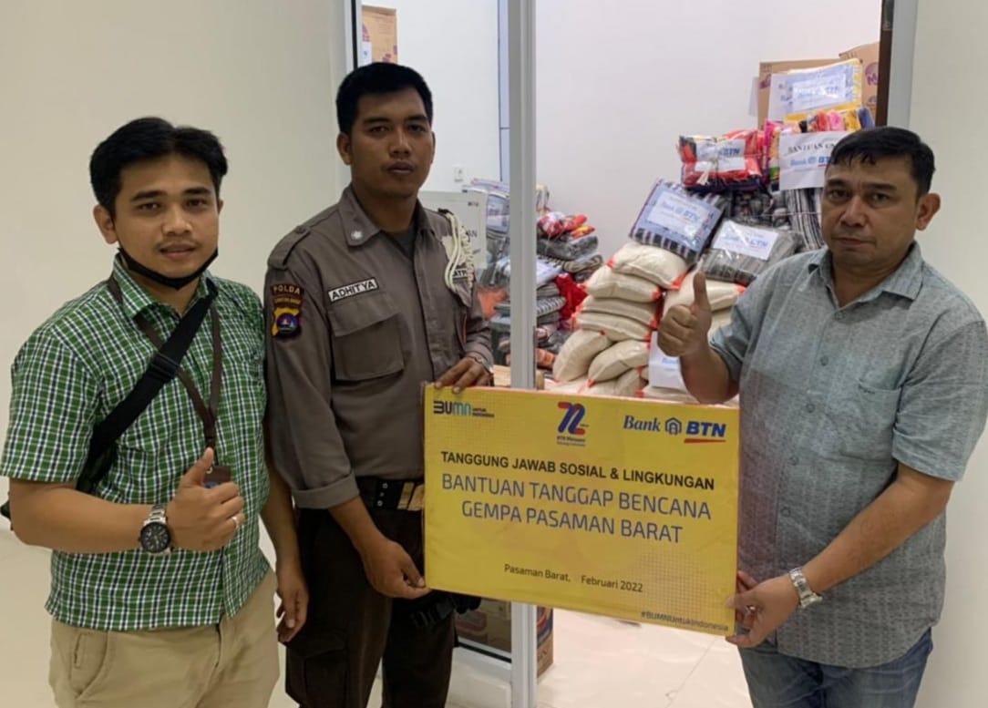 Deputy Service Manager (DSM) Kantor Cabang Bank BTN Padang Ahzar memberikan bantuan tanggung jawab sosial dan lingkungan (TJSL) kepada warga korban gempa Pasaman Barat melalui Posko Satgas BUMN Peduli Bencana di Padang, Jumat (25/2). Bank BTN memberikan bantuan tanggap bencana kepada korban gempa Pasaman Barat berupa sembako, selimut dan kebutuhan sehari-hari untuk bisa meringankan penderitaan para korban di pengungsian.