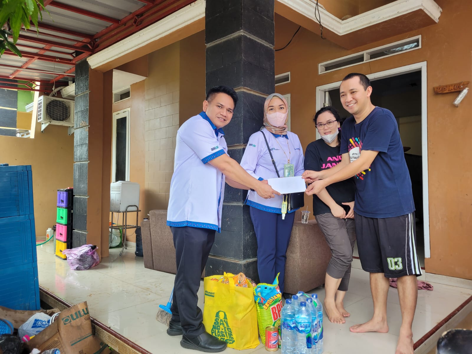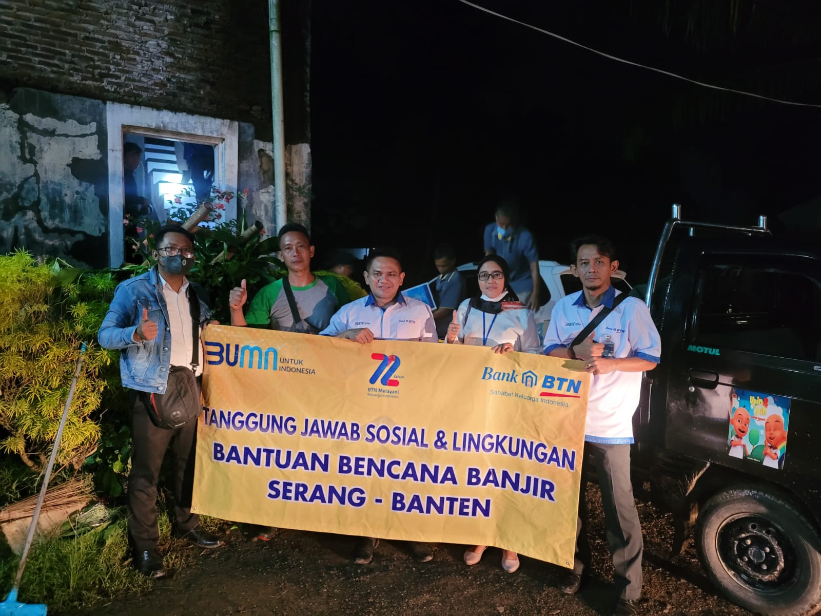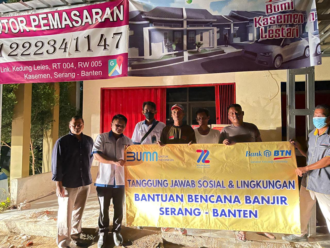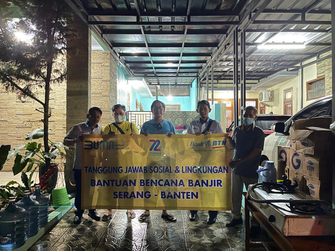 Deputy Branch Manager (DBM) Kantor Cabang Bank BTN Serang Banten Deddy Budiono memberikan bantuan tanggung jawab sosial dan lingkungan (TJSL) kepada warga korban banjir di Serang, Banten, Rabu (2/3). Bank BTN memberikan bantuan tanggap bencana kepada korban banjir Serang, Banten di Perumahan Bumi Kasemen Lestari, Perumahan Rahayu Residence, Perumahan Padma Raya dan Perumahan Pondok Angsana 2 berupa sembako, air mineral dan kebutuhan sehari-hari.