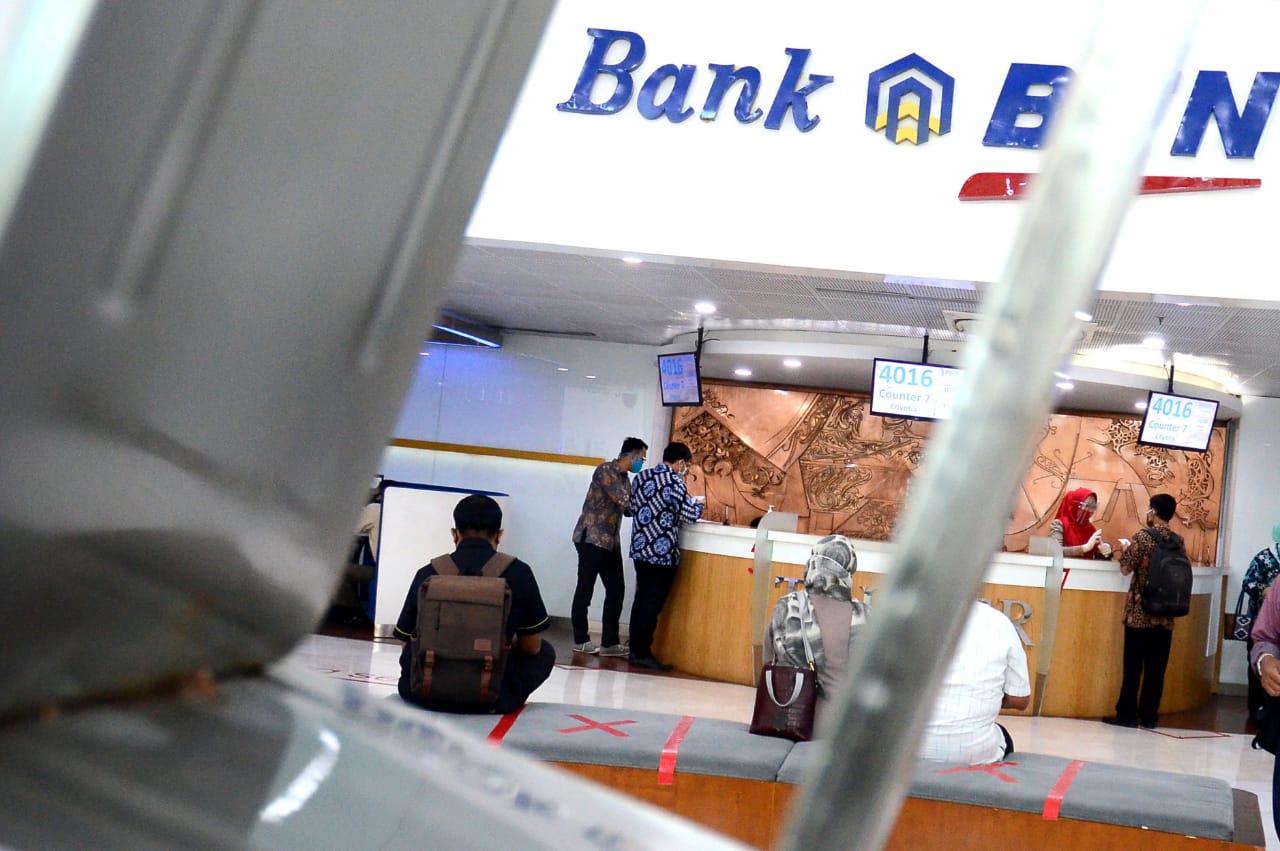 Seorang nasabah melakukan penarikan dana subsidi gaji di teller Bank BTN cabang Harmoni di Jakarta, Selasa (2/9). PT Bank Tabungan Negara (Persero) Tbk. didapuk menjadi salah satu Bank penyalur subsidi gaji oleh Pemerintah. Subsidi gaji merupakan salah satu program Pemulihan Ekonomi Nasional yangj dirilis pemerintah tanggal 27 Agustus 2020 dimana per awal September ini Bank BTN telah menyalurkan subsidi gaji kepada lebih dari 209.325 pekerja dengan nilai lebih dari Rp 251 miliar.