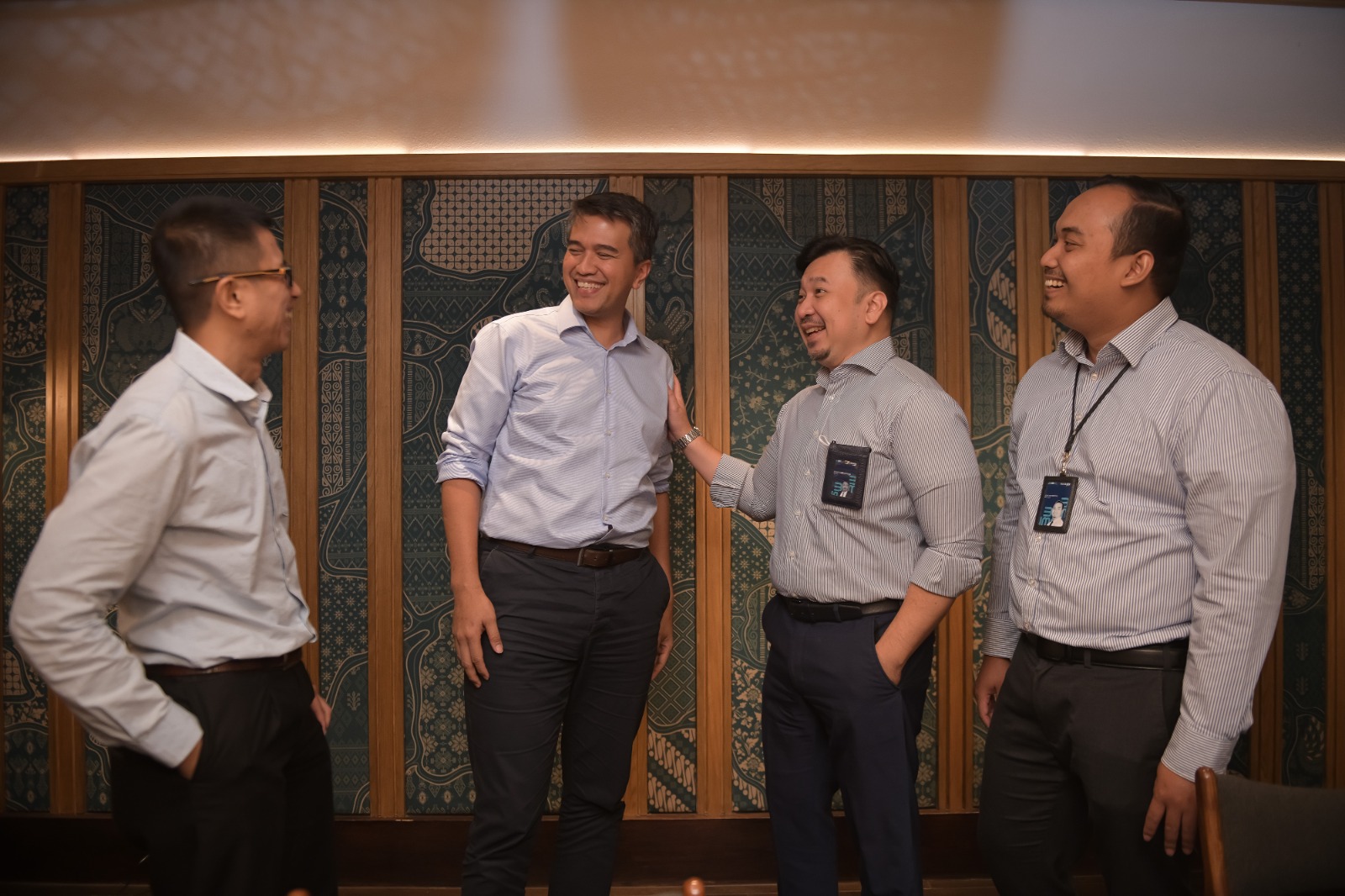 Corporate Secretary Bank BTN Ramon Armando berbincang dengan Kepala Divisi Digital Banking Bank BTN Tan Jacky Chen dan Kepala Divisi Treasury Bank BTN Sindhu Rahardian Ardita disela-sela Ngobrol Bareng Bank BTN dengan Media di Jakarta, Kamis (14/12). Dalam acara Ngobrol Bareng Bank BTN dengan Media dibahas mengenai berbagai update terkait kegiatan Bank BTN antara lain kesiapan dana tunai menjelang Libur Natal dan Tahun Baru serta perkembangan BTN Mobile.