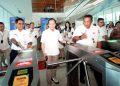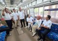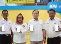 (Kanan–kiri) Executive Vice President of Rail Transit Jabodebek Mochamad Purnomosidi, Direktur Network & Retail Funding Bank Mandiri Jan Winston Tambunan, Direktur Departemen Kebijakan Sistem Pembayaran Bank Indonesia Fitria Irmi Triwati, dan Direktur Utama PT Kereta Commuter Indonesia Asdo Artriviyanto pada peresmian implementasi QRIS Tap di transportasi publik di Jakarta, Rabu (19/11).
