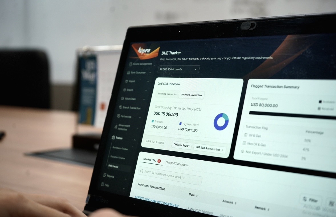 Dengan pemantauan transaksi yang lebih transparan, pengelompokan data yang sistematis, serta akses informasi yang lebih cepat, DHE Tracker di Kopra by Mandiri diharapkan dapat membantu eksportir meningkatkan efisiensi operasional sekaligus menjaga kepatuhan terhadap regulasi yang berlaku.