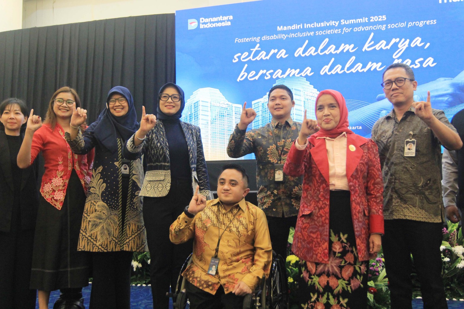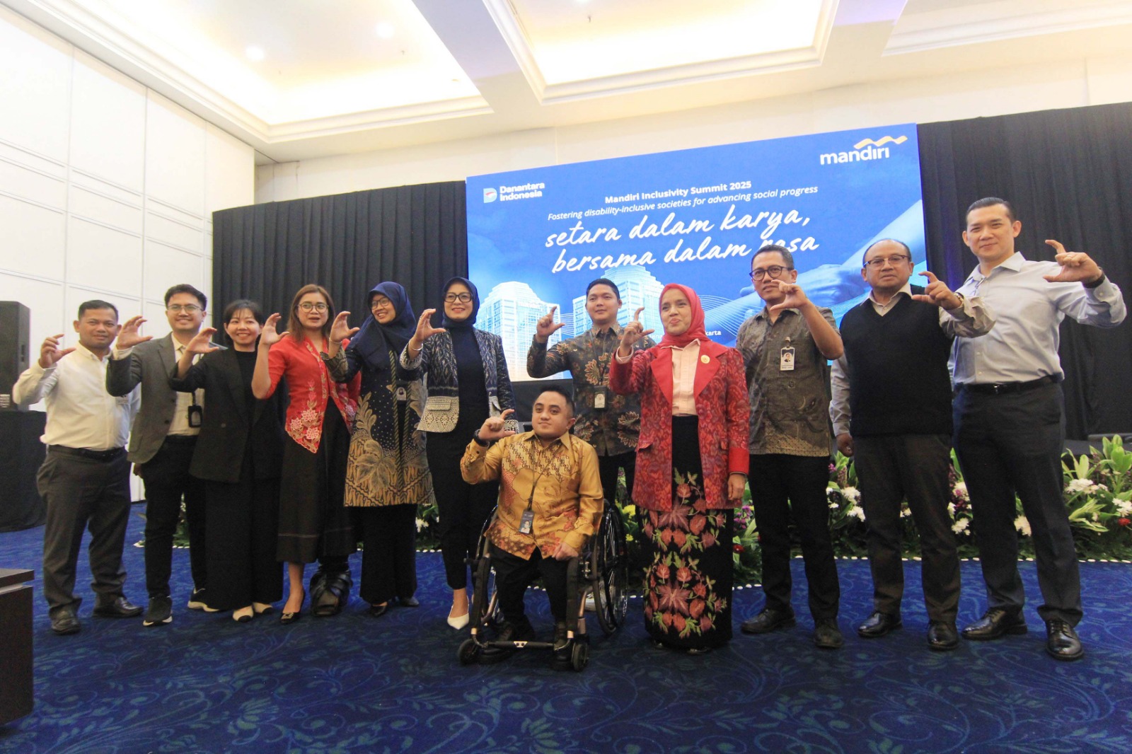 (kiri – kanan) Direktur Human Capital & Compliance Bank Mandiri, Eka Fitria (kiri) dan Ketua Komisioner Bidang Sosialisasi, Edukasi, dan Komunikasi Publik Komisi Informasi Pusat Republik Indonesia , Samrotunnajah Ismail (kanan) berbincang dengan pegawai Bank Mandiri pada acara Mandiri Inclusivity Summit 2025 di Jakarta pada Selasa (16/12). Dalam rangka memperingati Hari Disabilitas Internasional 2025, Bank Mandiri menyelenggarakan Mandiri Inclusivity Summit 2025 sebagai langkah dalam mewujudkan lingkungan kerja dan ekosistem usaha yang inklusif bagi penyandang disabilitas. Kegiatan ini dilengkapi dengan UMKM Expo sebagai upaya memperluas akses pembiayaan, memperkuat literasi keuangan UMKM penyandang disabilitas melalui pelatihan dalam bentuk sharing session, serta mendorong kontribusi talenta inklusif dalam mendukung pertumbuhan ekonomi nasional yang merata dan berkelanjutan.