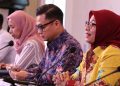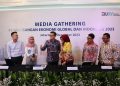 (Kiri – kanan) Head of Equity Research, Strategy, Consumer Mandiri Sekuritas Adrian Joezer, Head of Macroeconomic Outlook & Financial Market Research Bank Mandiri Dian Ayu Yustina, Chief Economist Bank Mandiri Andry Asmoro, Direktur Treasury and International Banking Bank Mandiri Eka Fitria, Head of Strategic Research Bank Mandiri Teguh Yudo Wicaksono, dan Head of Industry & Regional Research Bank Mandiri Dendi Ramdani saat berbincang pada acara Media Gathering Perkembangan Ekonomi Global dan Indonesia 2023 di Jakarta pada Selasa (19/21). Bank mandiri memproyeksikan pertumbuhan ekonomi Indonesia akan mencapai 5,04% di 2023 dan berakselerasi menjadi 5,06% di 2024. Bank bersandi saham BMRI ini meyakini kolaborasi pemerintah dan Bank Indonesia akan mendorong pertumbuhan kredit perbankan sebesar 9% di 2024.