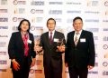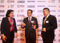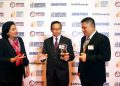 (Ki-Ka) Direktur Jaringan & Retail Banking Bank Mandiri Aquarius Rudianto (kedua dari kanan), Senior Vice President (SVP) Transaction Banking Retail Sales Bank Mandiri Thomas Wahyudi, dan SVP Micro Personal Loan Bank Mandiri Rheyna Anggun Marnala menerima dua penghargaan dari media regional Asian Banking Finance (ABF) di Marina Bay Sands Expo and Convention Center, Singapura, pada Selasa (25/7). Dalam ajang tersebut, Bank Mandiri meraih 2 penghargaan ABF Retail Banking 2023 yakni Mobile Banking & Payment Initiative of the Year dan meraih gelar sebagai The New Consumer Lending Product of the Year. Pengakuan ini menegaskan bahwa Bank Mandiri telah on track dalam mengeksekusi rencana bisnis dengan capaian kinerja yang optimal dan berperan agen pembangunan lewat serangkaian optimalisasi dan inovasi layanan.