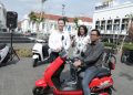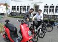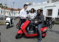 (Ki-Ka) CEO PT Juara Bike (SELIS) Wilson Teoh, VP Area Head Bank Mandiri Tangerang Ki Samaun Shanti hayuningtyas dan RCEO III/Jakarta 1 I Gede Raka Arimbawa saat penyerahan kendaraan listrik operasional untuk 11 area dibawah Region III di Jakarta, Jumat (20/1). Kerjasama ini menjadi bentuk dukungan Bank Mandiri sebagai salah satu anggota “First Movers on Sustainable Banking” untuk mencapai target Nationally Determined Contribution (NDC) dan Net Zero Emission Operasional di tahun 2030 serta mendukung visi Net Zero Emission (NZE) tahun 2060 pemerintah. Sebanyak 36 unit kendaraan bermotor listrik dan sepeda listrik akan digunakan sebagai alat operasional di 11 area di bawah Region III, termasuk wilayah Banten dan sebagian wilayah Jakarta dan Diharapkan, penggunaan kendaraan listrik dapat terus ditingkatkan di seluruh wilayah kerja Bank Mandiri.