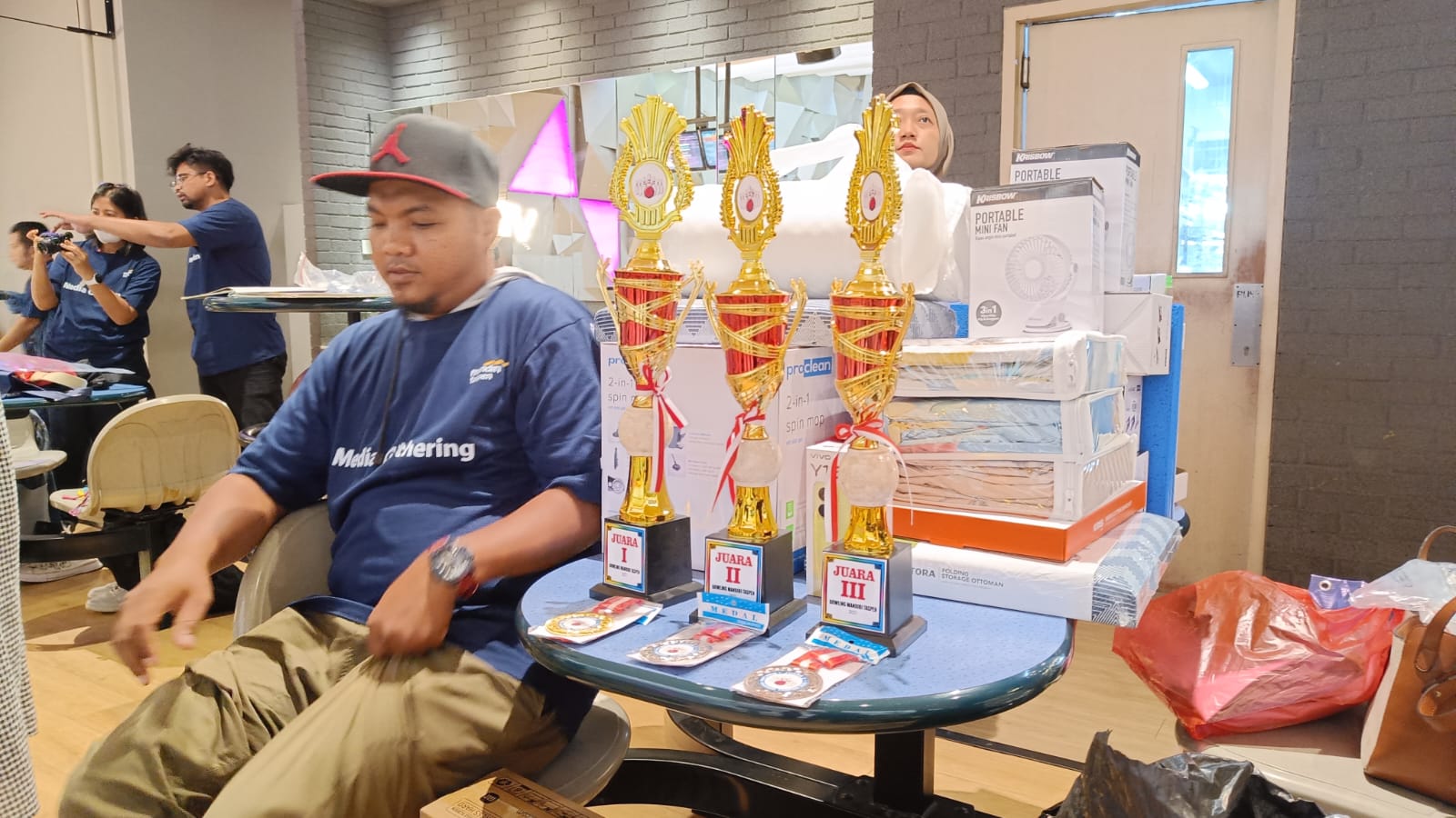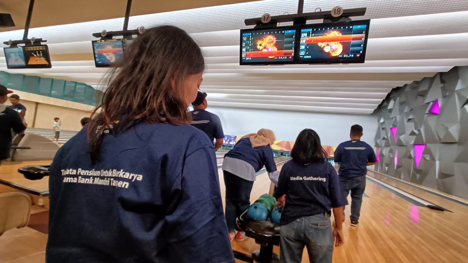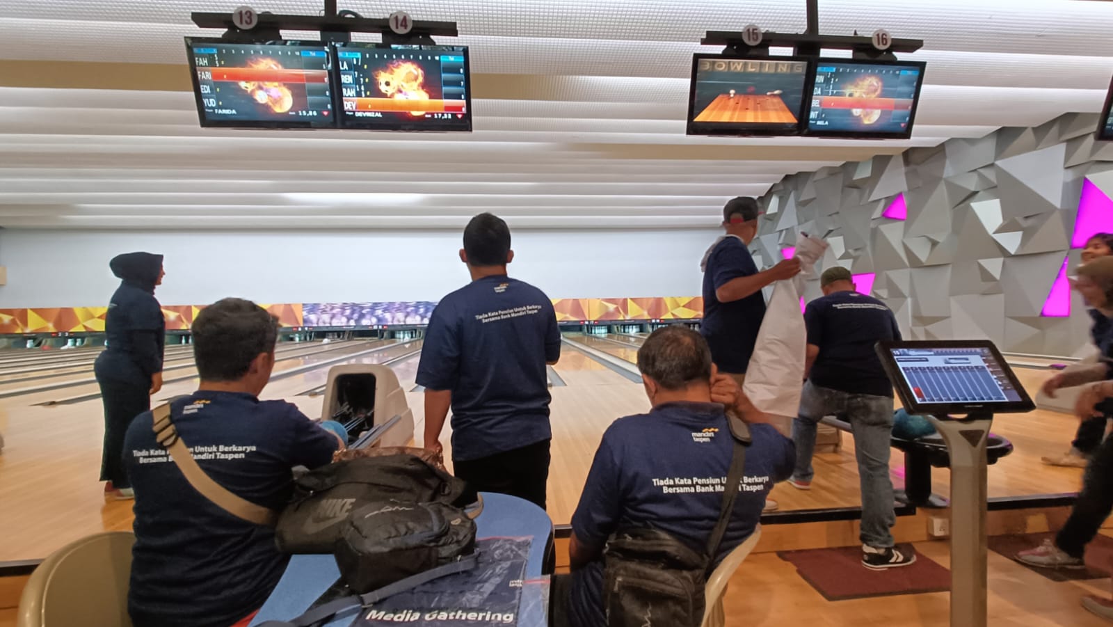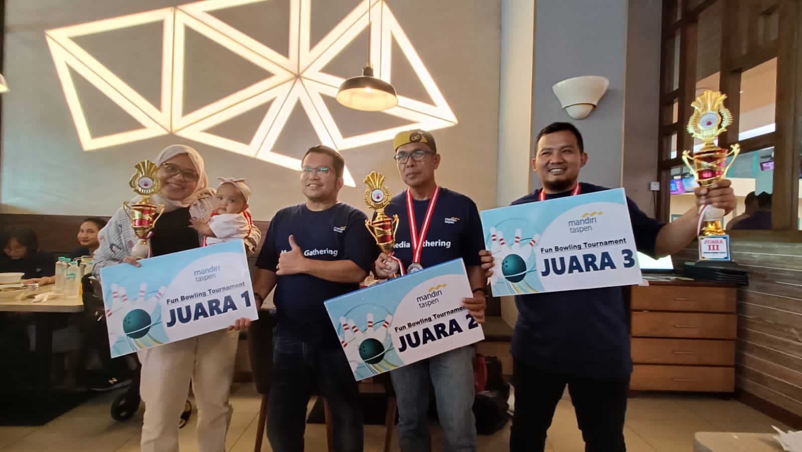 Corporate Secretary Bank Mandiri Taspen (Bank Mantap) Errinto Pardede memberikan hadiah secara simbolik kepada para pemenang lomba “Fun Bowling Tournament” di acara Media Gathering yang diselenggarakan oleh Bank Mantap di Spincity Bowling Alley, The Breeze, BSD, Sabtu (8/7). Bank Mantap mengadakan media gathering bersama wartawan-wartawan dari desk ekonomi dan bisnis untuk memperkuat hubungan baik yang telah terjalin dan sebagai wujud apresiasi kepada profesi wartawan yang secara konsisten memberikan informasi-informasi yang positif dan terpercaya kepada masyarakat Indonesia.