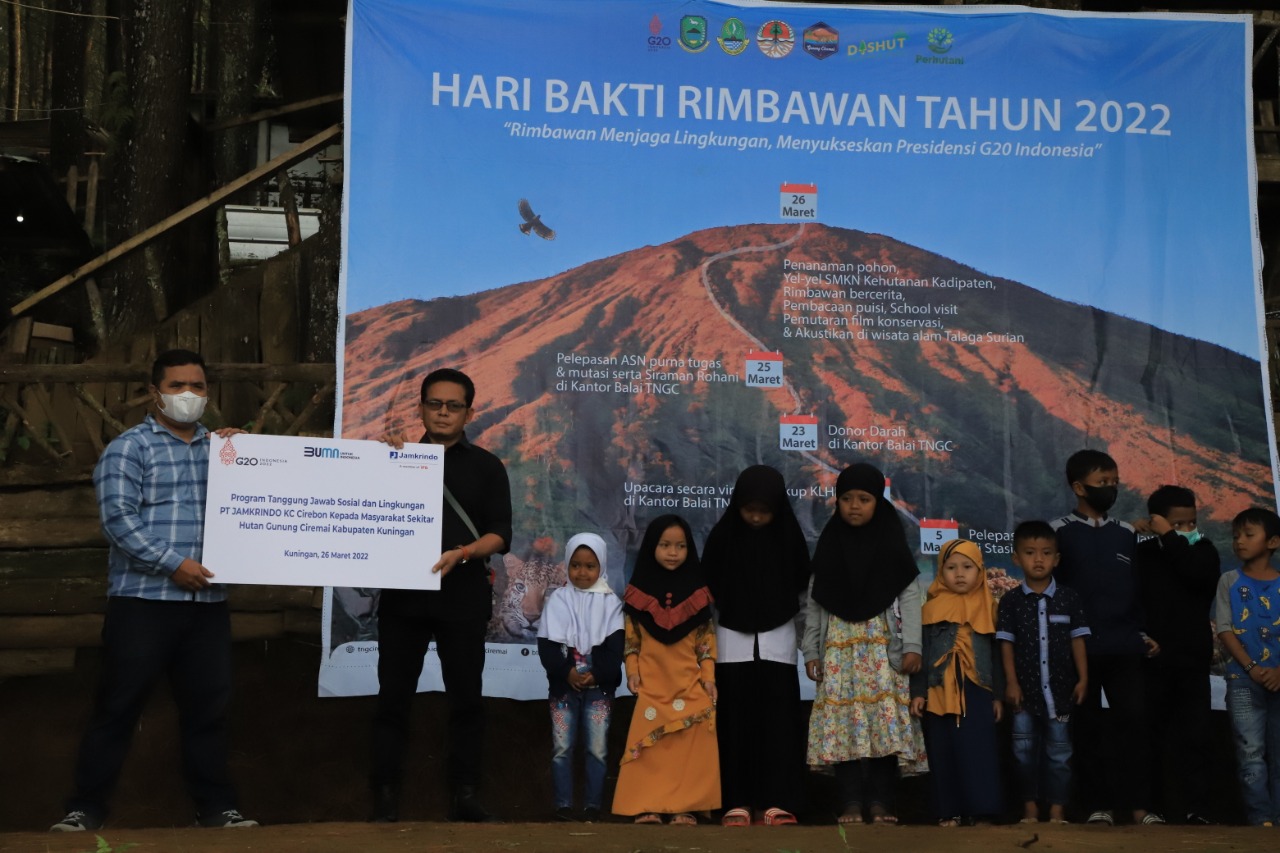 Dalam kegiatan tersebut, memberikan bantuan penanaman ratusan bibit pohon kepada kelompok masyarakat pemulihan ekosistem Lempong Balong di Taman Nasional Gunung Ciremai.
