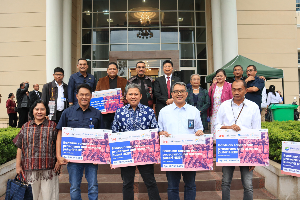 Indonesia Financial Group (IFG) dan anak perusahaannya, yakni PT Jamkrindo, PT Askrindo, dan PT Jasindo berkolaborasi memberikan bantuan Program Tanggung Jawab Sosial dan Lingkungan (TJSL) berupa bantuan mobiler untuk asrama putri Huria Kristen Batak Protestan (HKBP) di Sumatera Utara, Jumat (24/2). Pemberian bantuan dihadiri dan disaksikan oleh Wakil Ketua Komisi VI DPR RI Martin Manurung, Staf Khusus III Kementerian BUMN Arya Sinulingga, Direktur Bisnis IFG Pantro Pander Silitonga, Direktur Bisnis Penjaminan PT Jamkrindo Henry Panjaitan, Direktur Keuangan Askrindo Liston Simanjuntak, dan Direktur Utama Jasindo Andy Samuel Panggabean di Tarutung.