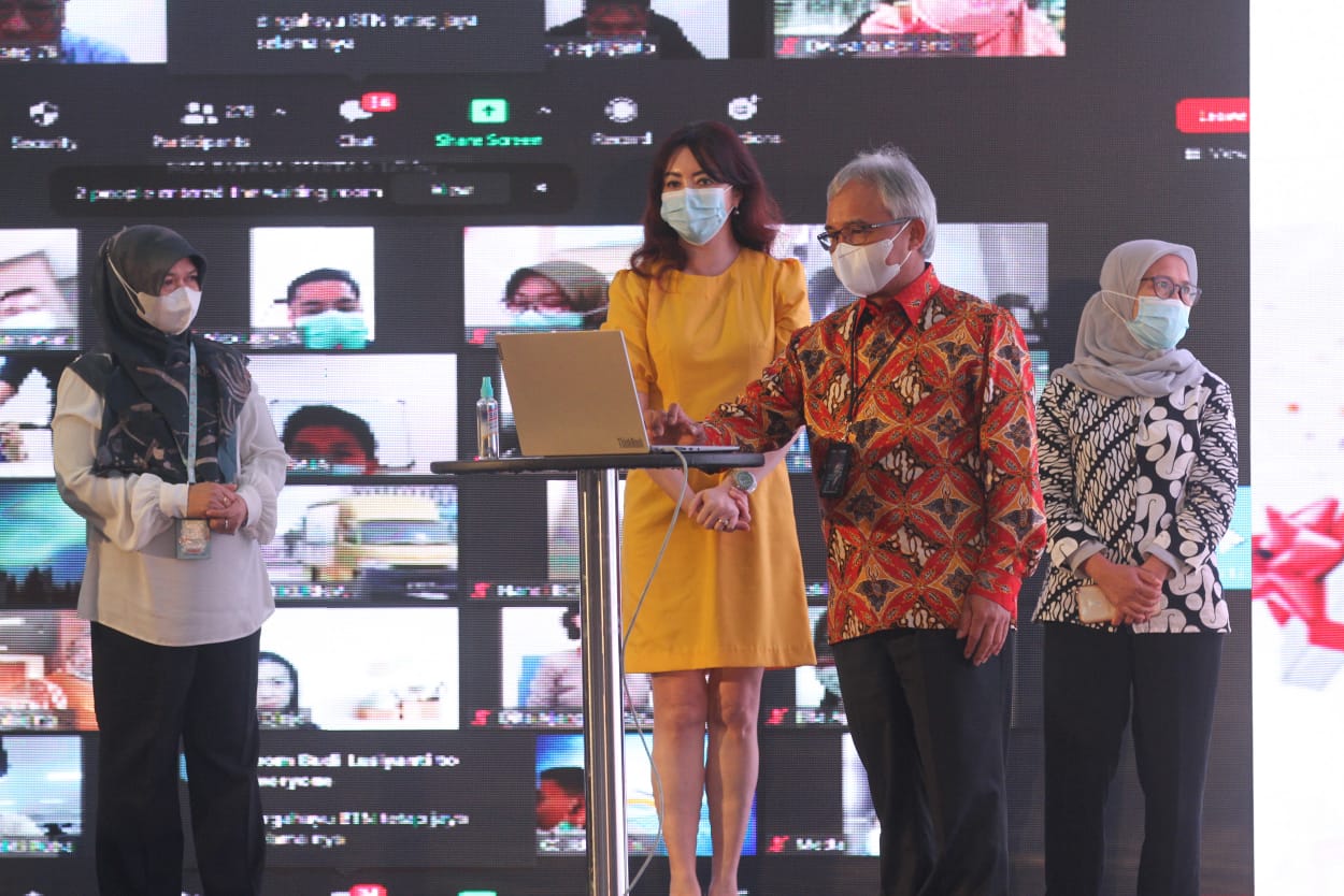 Direktur Distribution & Retail Funding PT Bank Tabungan Negara (Persero) Tbk. Jasmin (kedua kanan) didampingi Marketing Communication Division Head Ramon Armando, Wealth Management Divisin Head (Sri R. M. Sudarsari), dan Department Head Wealth Management Division Frengky R. berbincang usai acara Penarikan Undian Tahap 1 Batara Spekta di Jakarta, Kamis (17/12). Melalui program loyalitas nasabah bertajuk Batara Spekta tersebut, Bank BTN sukses mencatatkan peningkatan 400 ribu nasabah dan Rp2 triliun dana murah sejak resmi diluncurkan pada 9 September 2020 silam. Pencapaian tersebut sejalan dengan target perseroan menjaga porsi dana murah di level 40%. Dalam gelaran pesta Undian Tahap 1 ini, Bank BTN mencatat ada 55 ribu kupon undian nasabah yang dapat ditukarkan dengan 35 hadiah menarik.