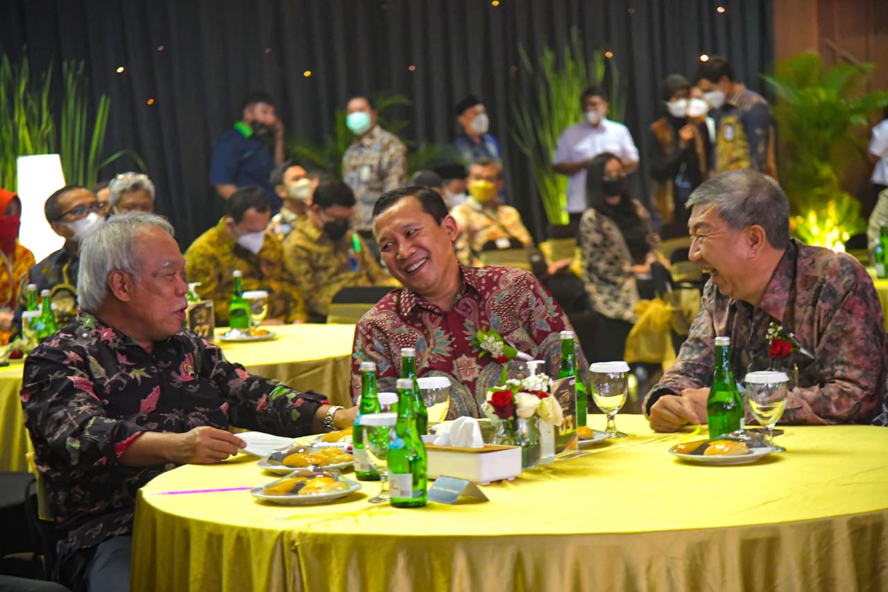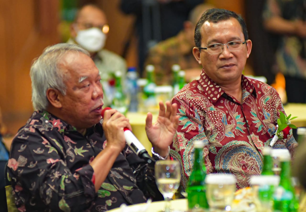 Menteri Pekerjaan Umum dan Perumahan Rakyat Basuki Hadimuljono (kanan) menjabat tangan Direktur Utama PT Bank Tabungan Negara (Persero) Tbk., Haru Koesmahargyo disaksikan Ketua Umum DPP REI, Paulus Totok Lusida usai menyatakan komitmen bersama saat Hari Perumahan Nasional (Hapernas) dengan tema “Kolaborasi Wujudkan Hunian Layak dan Terjangkau untuk Semua” di Jakarta, Kamis (25/8). Komitmen dan kontribusi Bank BTN mendukung program perumahan nasional meraih apresiasi dari Pemerintah, dalam hal ini Kementerian Pekerjaan Umum dan Perumahan Rakyat (PUPR) dengan diberikannya penghargaan atas keberhasilan BTN dalam menyalurkan KPR Subsidi Terbanyak untuk semua segmen di Indonesia.