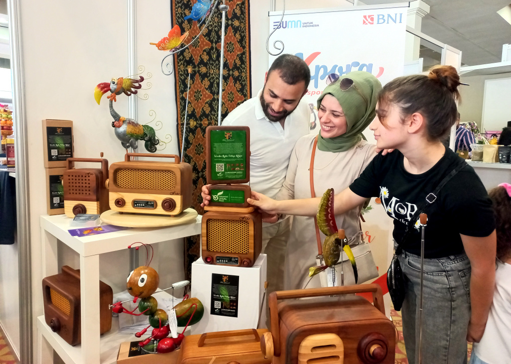 Penduduk Turki mengunjungi Booth Mitra Binaan BNI di acara Festival Pasar Senggol Turki, Minggu (5/6/2022). BNI berupaya untuk mendorong kinerja UMKM Global dalam menjawab potensi pasar Indonesia-Turki yang nilai perdagangannya mencapai US$2,01 miliar.