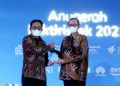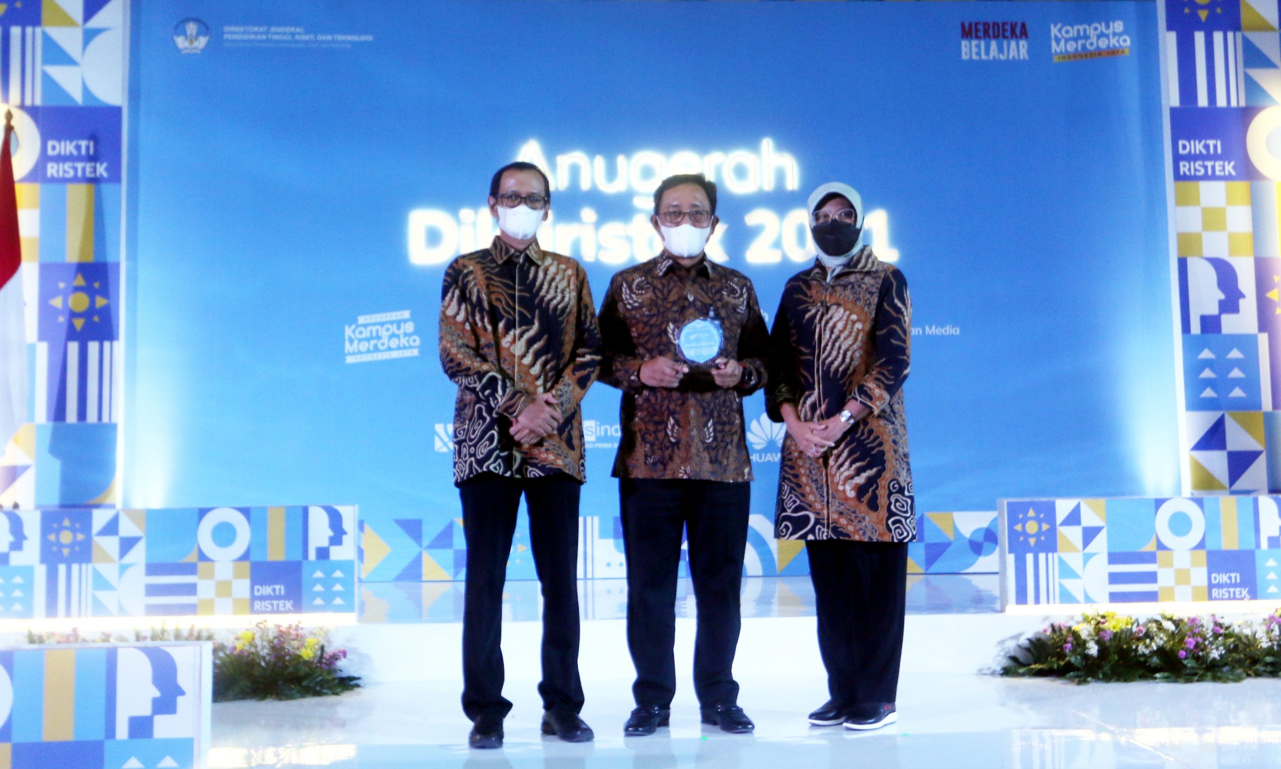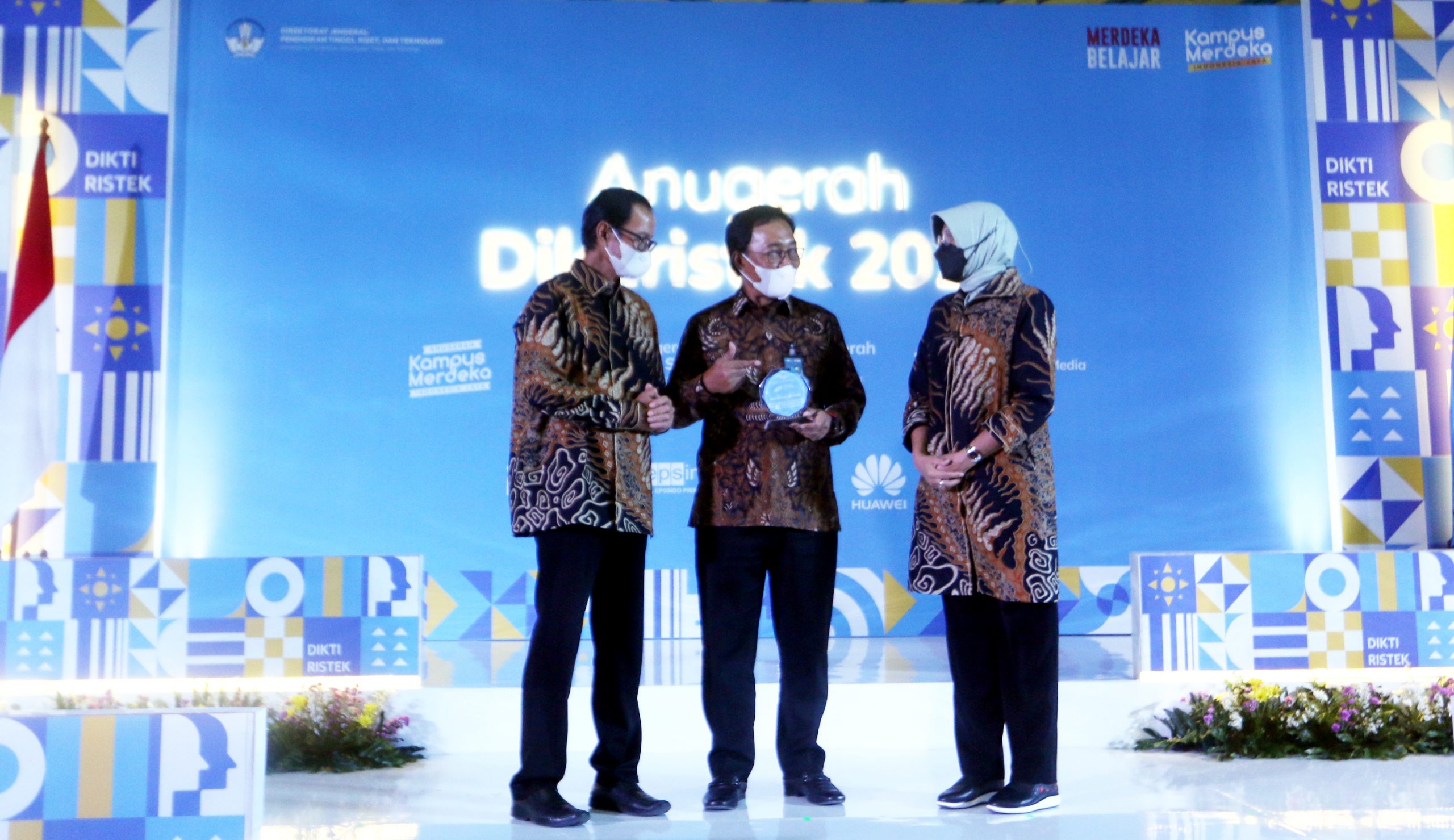 Ki-ka : Pelaksana tugas (Plt.) Direktur Jenderal Pendidikan Tinggi, Kementerian Pendidikan, Kebudayaan, Riset, dan Teknologi (Kemdikbud Ristek) Nizam; Direktur Hubungan Kelembagaan BNI Sis Apik Wijayanto; serta Plt. Sekretaris Direktorat Jenderal Pendidikan Tinggi Kemdikbud Ristek Tjitjik Srie Tjahjandarie dalam Penyerahan Anugerah Mitra Kemdikbud Ristek demi mendukung Campus Financial Ecosystem, Jakarta, Kamis (13/1/2022).