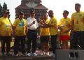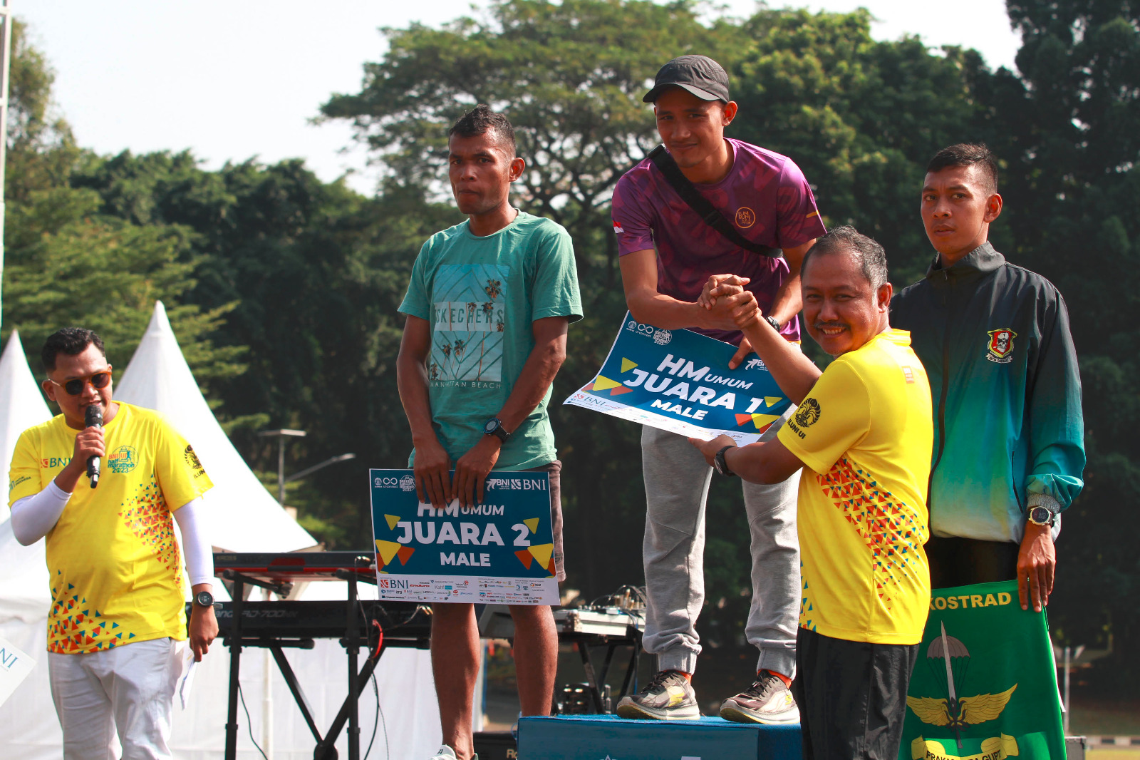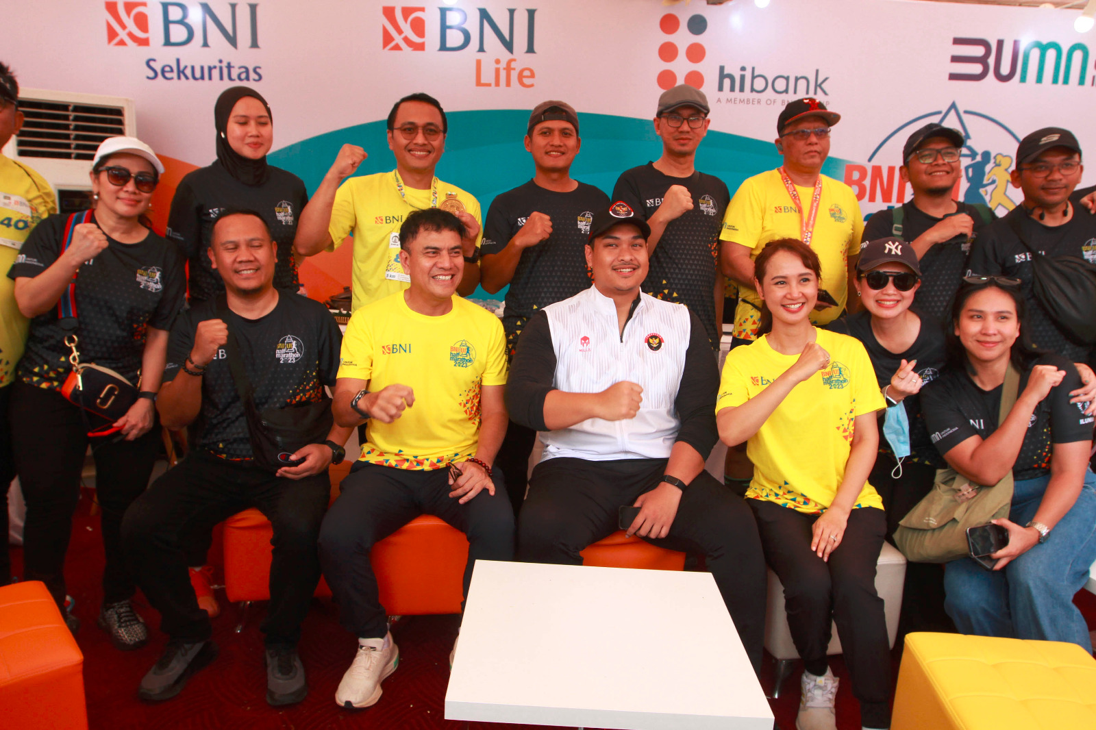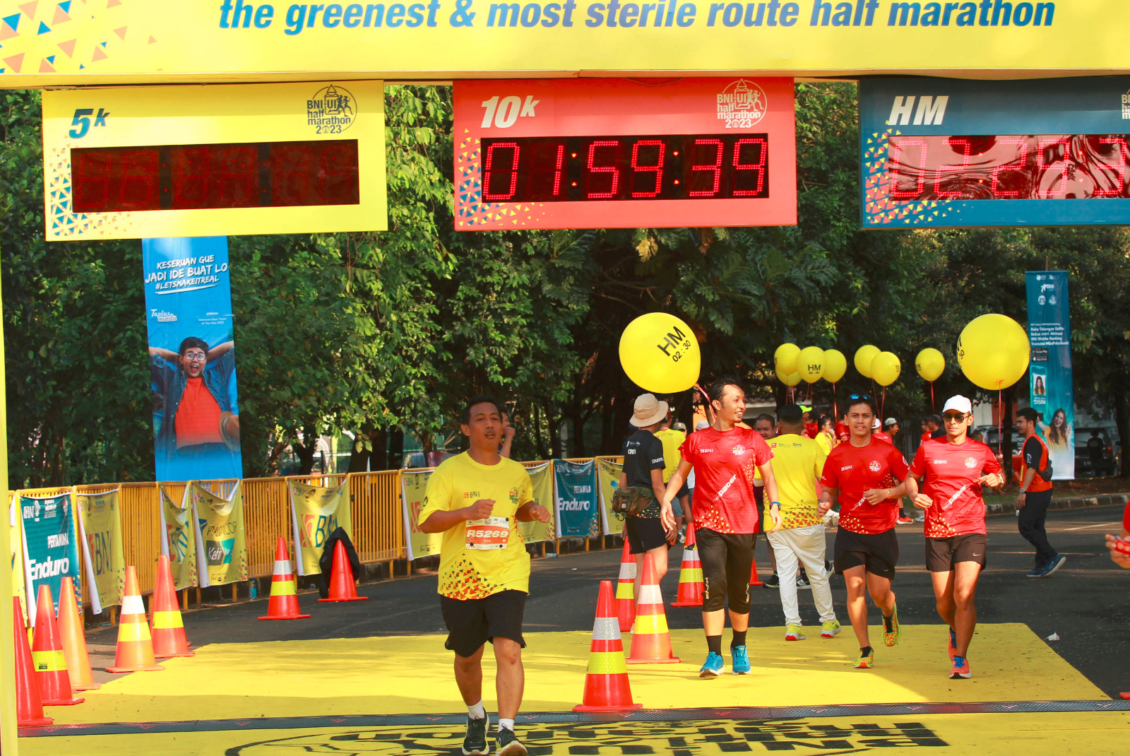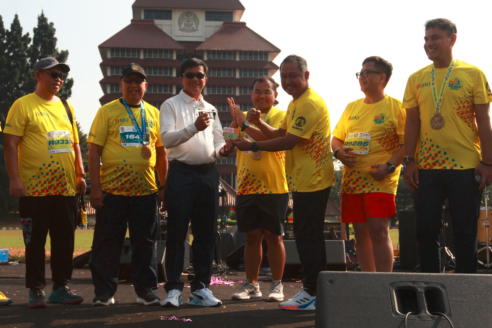 Komisaris Utama BNI Agus D.W. Martowardojo, Direktur Institutional Banking BNI Muhammad Iqbal, Ketua Senat Akademik UI Nachrowi Djalal Nachrowi, Ketua Umum ILUNI UI Didit Ratam, dan pejabat BNI dan UI lainnya dalam pelaksanaan BNI UI Half Marathon 2023.