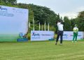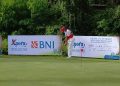 Peserta Kompetisi Xpora Virtual Golf Tour 2021 tengah melakukan approach shot di Bali National Golf Club, Sabtu (27/11/2021).