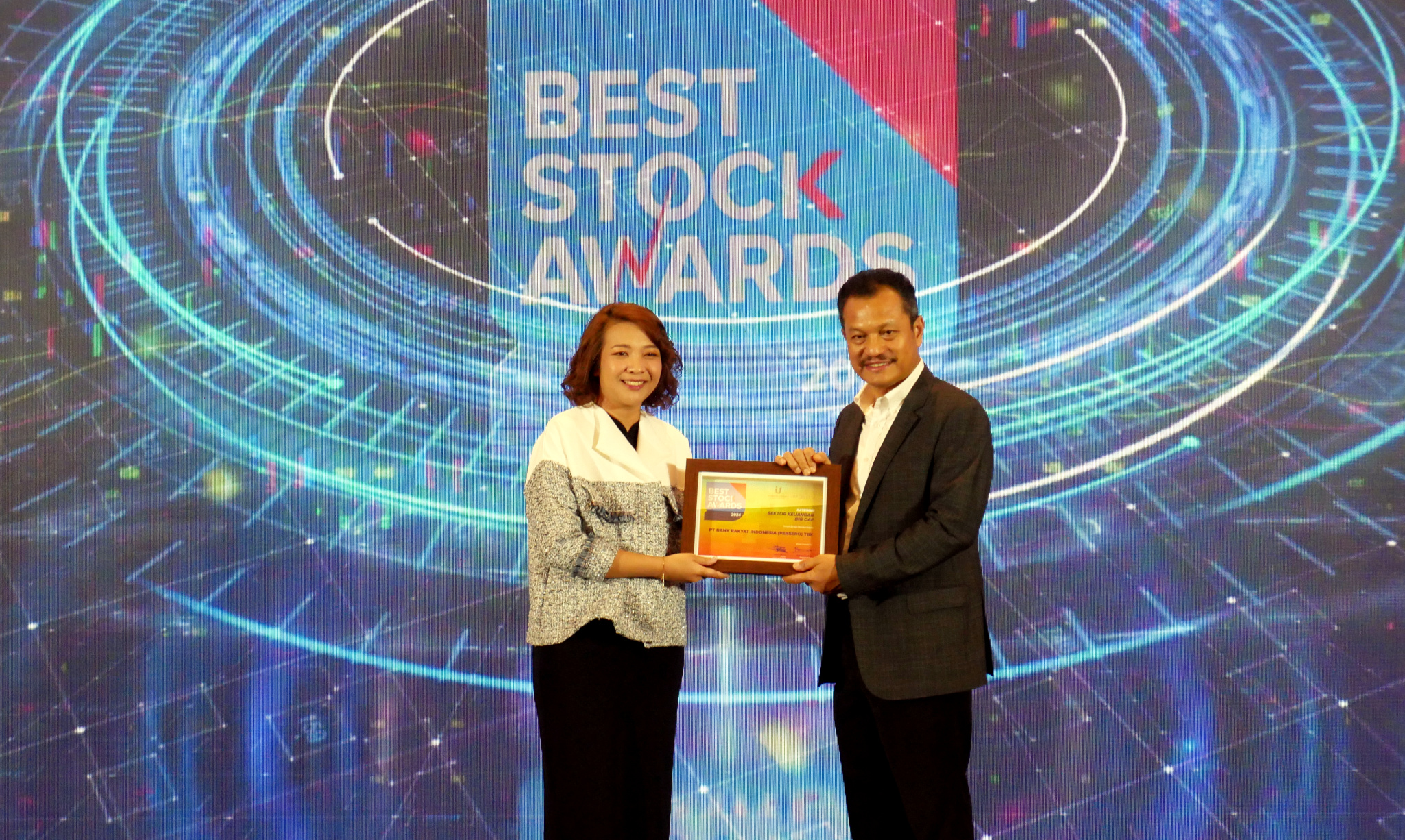 Senior Manager Investor Relation BRI Friska Anggi (kiri) saat menerima penghargaan Best Stock Award 2024 yang diserahkan Pemimpin Redaksi Investortrust.id Primus Dorimulu pada acara Best Stock Awards 2024 di Jakarta, Kamis, (25/01/2024).