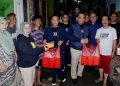 Direktur Sales & Distribution BSI Anton Sukarna (tengah) melakukan kunjungan dan memberikan bantuan berupa makanan, bahan pokok, serta perlengkapan sanitasi Kebersihan bagi masyarakat yang terkena banjir Jabodetabek. Jakarta,Kamis (6/3). Diantaranya 500 box makanan berbuka puasa,100 paket bantuan bahan pokok, serta perlengkapan kebersihan untuk sanitasi warga.
