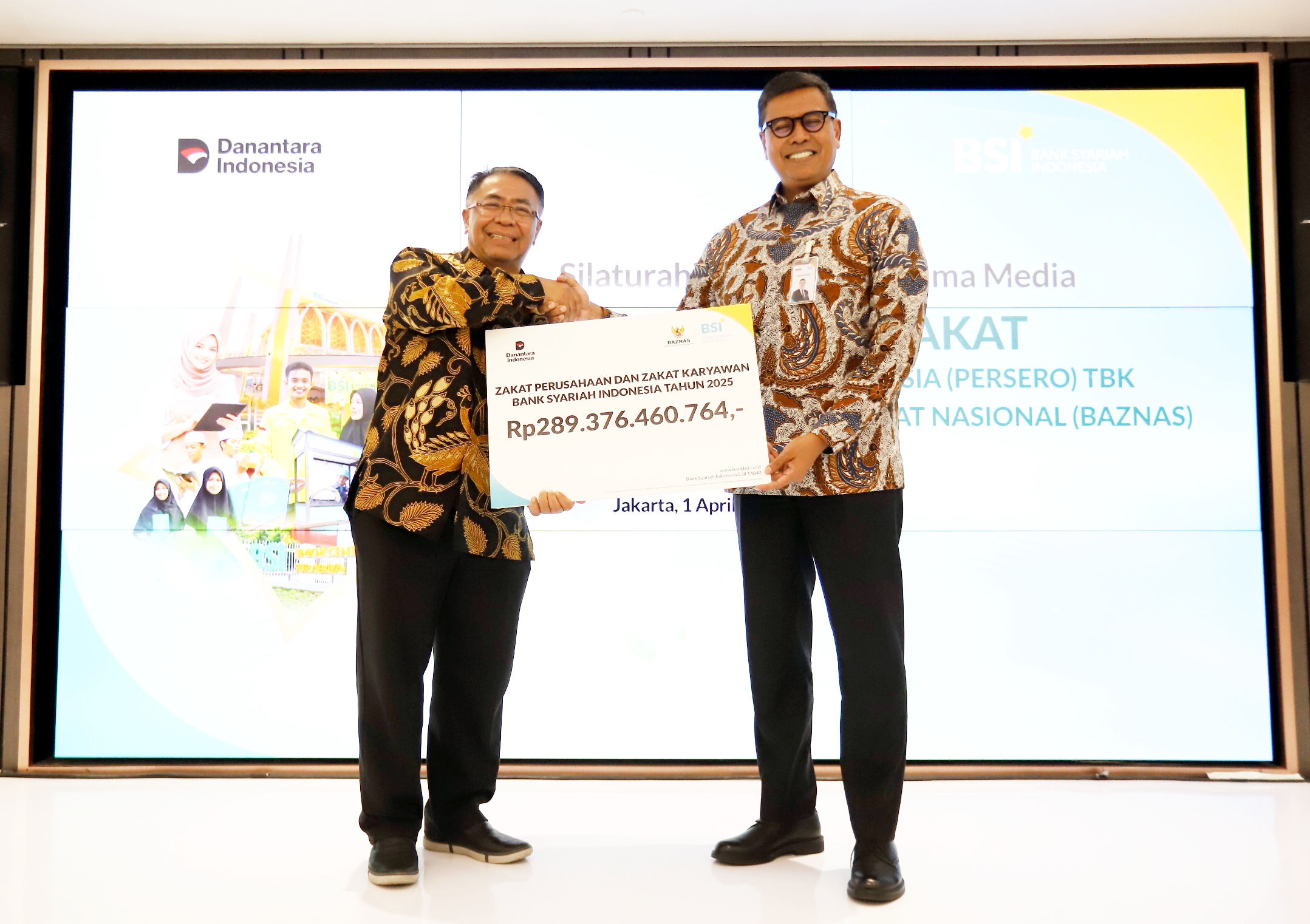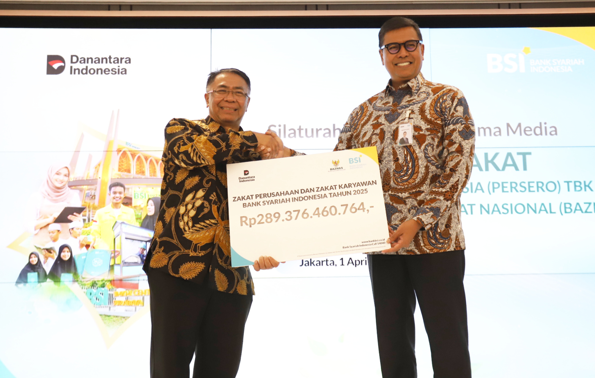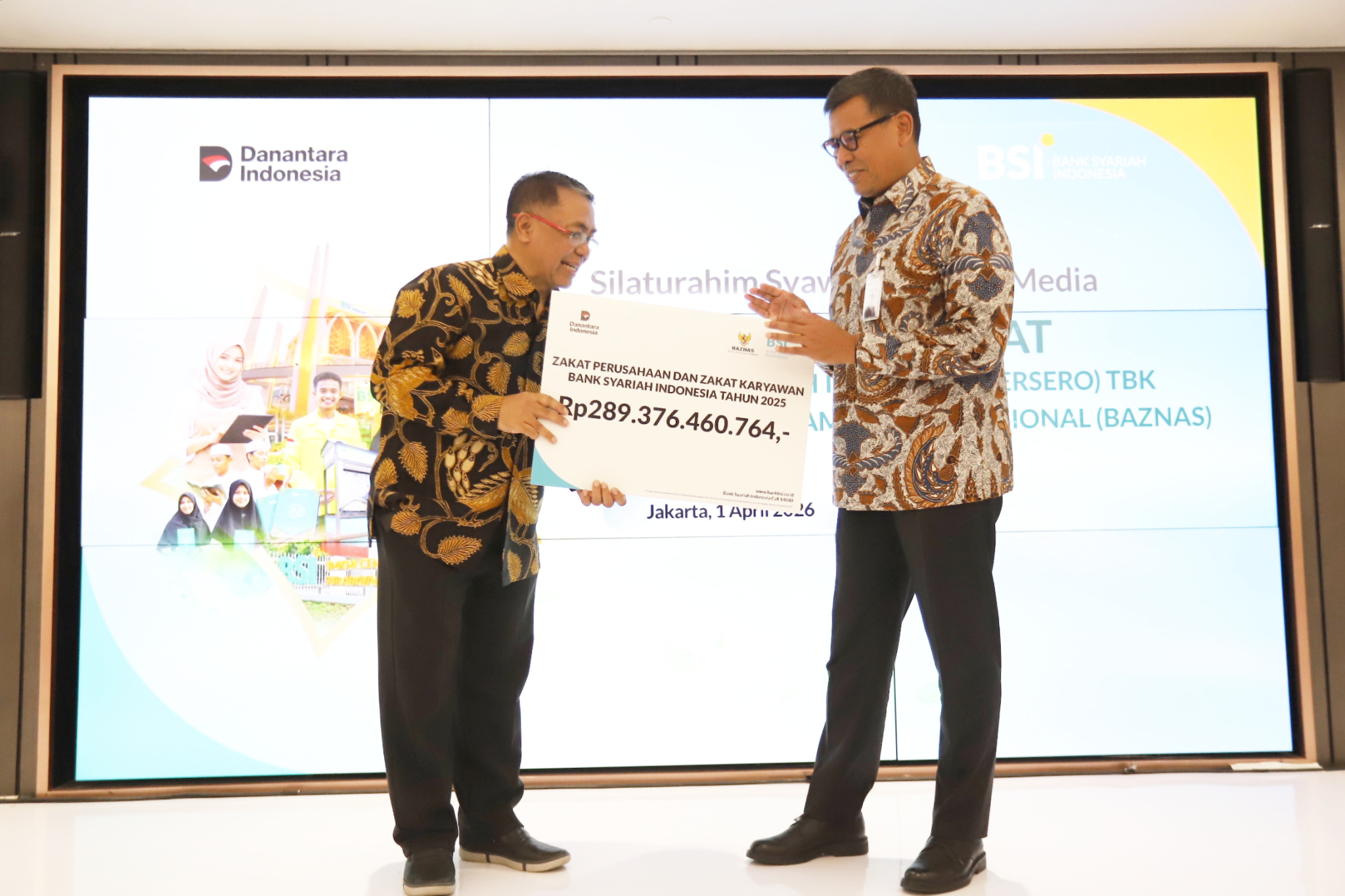 PT Bank Syariah Indonesia (Persero) Tbk (BSI) menyalurkan zakat perusahaan dan pegawai tahun 2025 sebesar Rp289 miliar kepada Badan Amil Zakat Nasional (Baznas) RI, jumlah ini naik 7,77% (YoY) memperkuat tren peningkatan kontribusi zakat BSI yang konsisten sejalan dengan pertumbuhan kinerja bisnis perseroan.