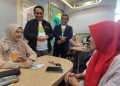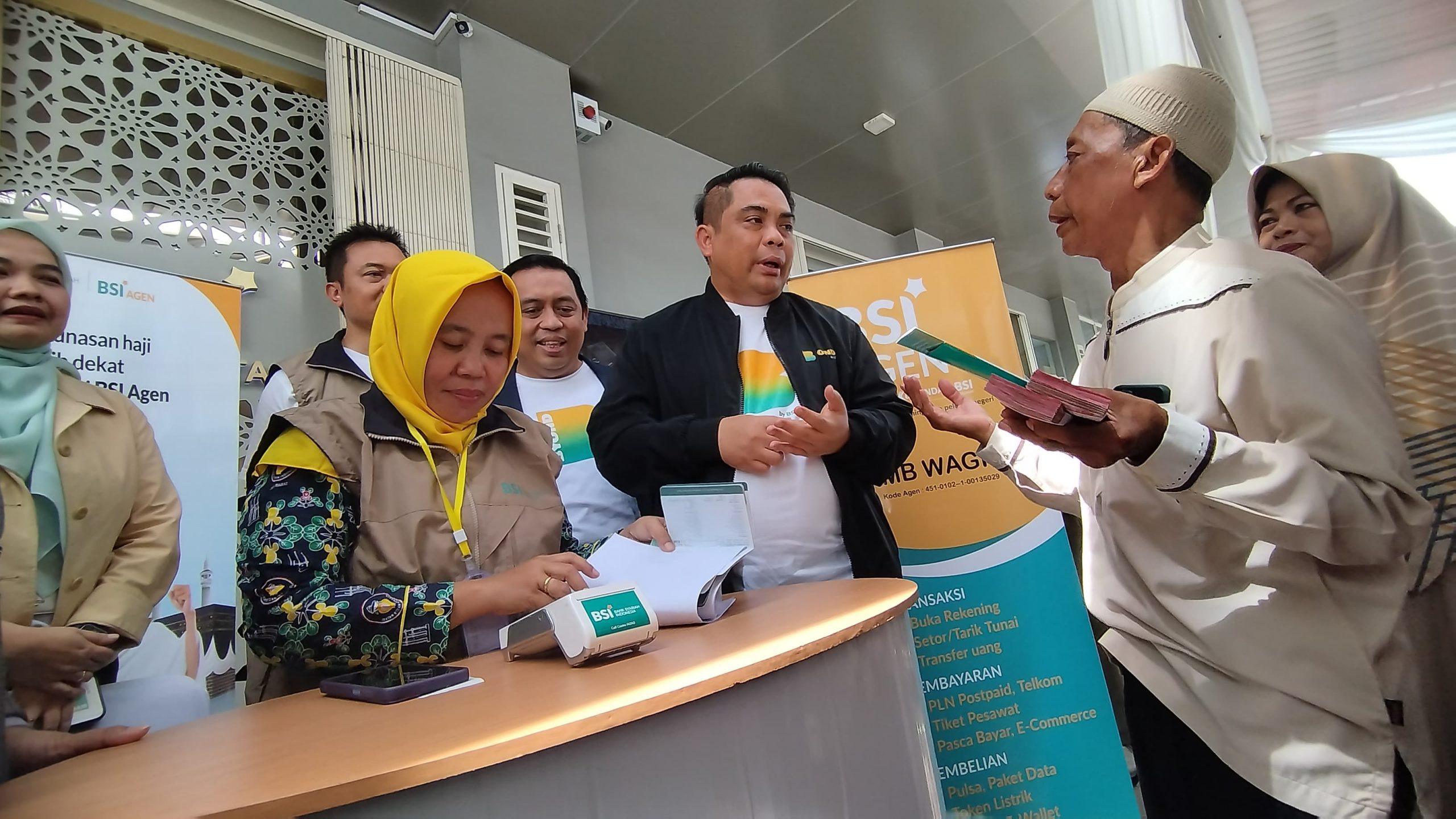 Direktur Sales & Distribution BSI Anton Sukarna (tengah) didampingi RCEO BSI Regional Jakarta 1 Gunawan Arif Hartoyo (kiri) meninjau langsung kesiapan pelunasan haji tahap l (14 Februari-14 Maret 2025) di Kantor Cabang BSI Bekasi Summarecon. Tahun ini, PT Bank Syariah Indonesia Tbk (BSI) berangkatkan sekitar 185 ribu calon jamaah haji Indonesia atau sekitar 83,8% dari total jamaah haji Indonesia.