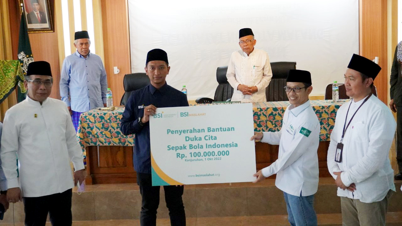 PT Bank Syariah Indonesia Tbk (BSI) bersama dengan BSI Maslahat dan LAZISNU menyalurkan bantuan kepada keluarga korban peristiwa Kanjuruhan Malang. Kegiatan ini dilakukan di Posko bantuan korban kanjuruhan baik di Kabupaten maupun Kota Malang.