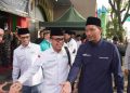 Dari kiri ke kanan: Ketua Umum Pengurus Besar Nahdlatul Ulama (PBNU), Yahya Cholil Staquf, Komisaris Independen BSI, Arief Rosyid Hasan, Wakil Ketua LAZISNU, Qohari Cholil, Deputy Funding & Transaction BSI Region Office 8 Surabaya, Asep Saifudin Suria Hidayat pada acara penyerahan bantuan duka cita Sepak Bola Indonesia sebesar Rp100 juta di Kanjuruhan Malang, Selasa (4/10).