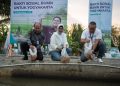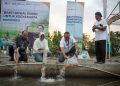 Direktur Compliance & Human Capital BSI Tribuana Tunggadewi (kiri kedua), Asisten Deputi Bidang Tanggung Jawab Sosial dan Lingkungan Kementerian BUMN Edi Eko Cahyono (kanan kedua), Staf Ahli Bupati Sleman Bidang Ekonomi dan Pembangunan Heru Saptono (kiri pertama), dan Tenaga Ahli Pengembangan Kawasan Agro Mina Park Frans Hero Making (kanan pertama) saat melakukan penebaran benih ikan nila sebanyak 125 kg dan memberikan 500 paket sembako di Desa Wisata Mina Padi Samberembe, Sleman, Yogyakarta. (14/08)