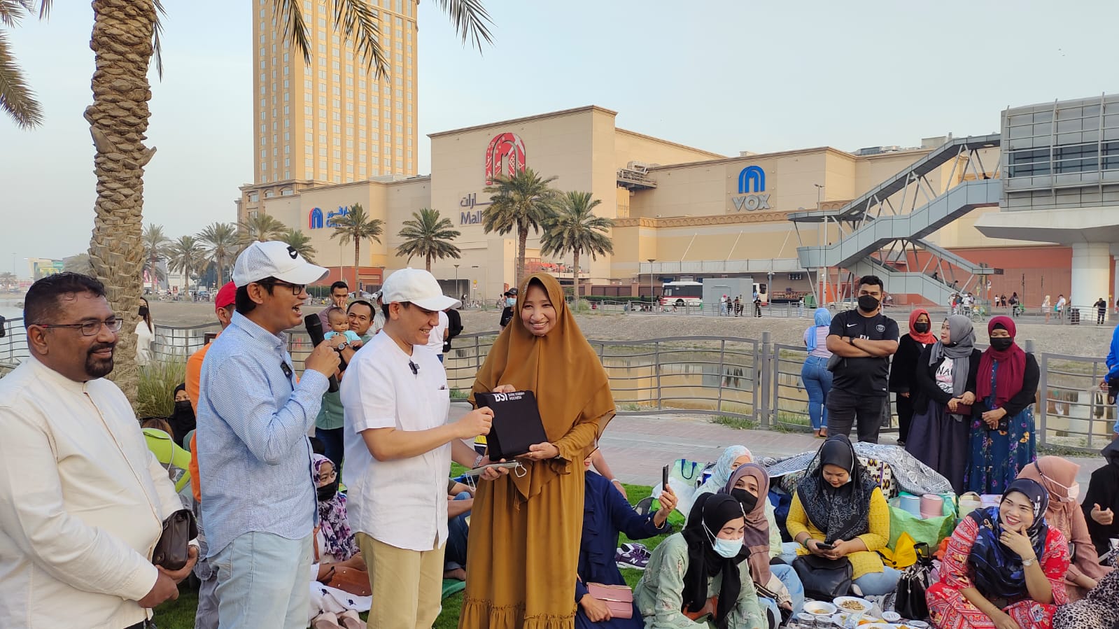 Principal Representative Office Bank Syariah Indonesia DIFC Dian Faqihdien Suzabar (kanan) didampingi Special Envoy Timor Leste Arif Sagran (dua kanan) memberikan cinderamata kepada perwakilan Warga Negara Indonesia di Dubai pada saat buka bersama di Mall of Emirates Dubai, Uni Emirat Arab Akhir pekan lalu. Kehadiran BSI di Dubai merupakan langkah strategis bagi perekonomian Tanah Air, karena menjadi bank dari Indonesia pertama yang memiliki kantor perwakilan di kawasan Timur Tengah. BSI dapat menjadi jembatan penghubung antara Indonesia dan investor global, untuk menginvestasikan dananya pada proyek-proyek pemerintah, BUMN dan juga untuk proyek-proyek pembangunan lainnya di Tanah Air.