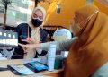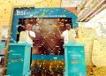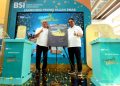 Direktur Retail Banking BSI Ngatari (kiri) dan Direktur Sales & Distribution BSI Anton Sukarna (kanan) saat meresmikan Program Hujan Emas BSI 2022 di Pasar Mayestik, Kebayoran Baru, Jakarta (6/7).