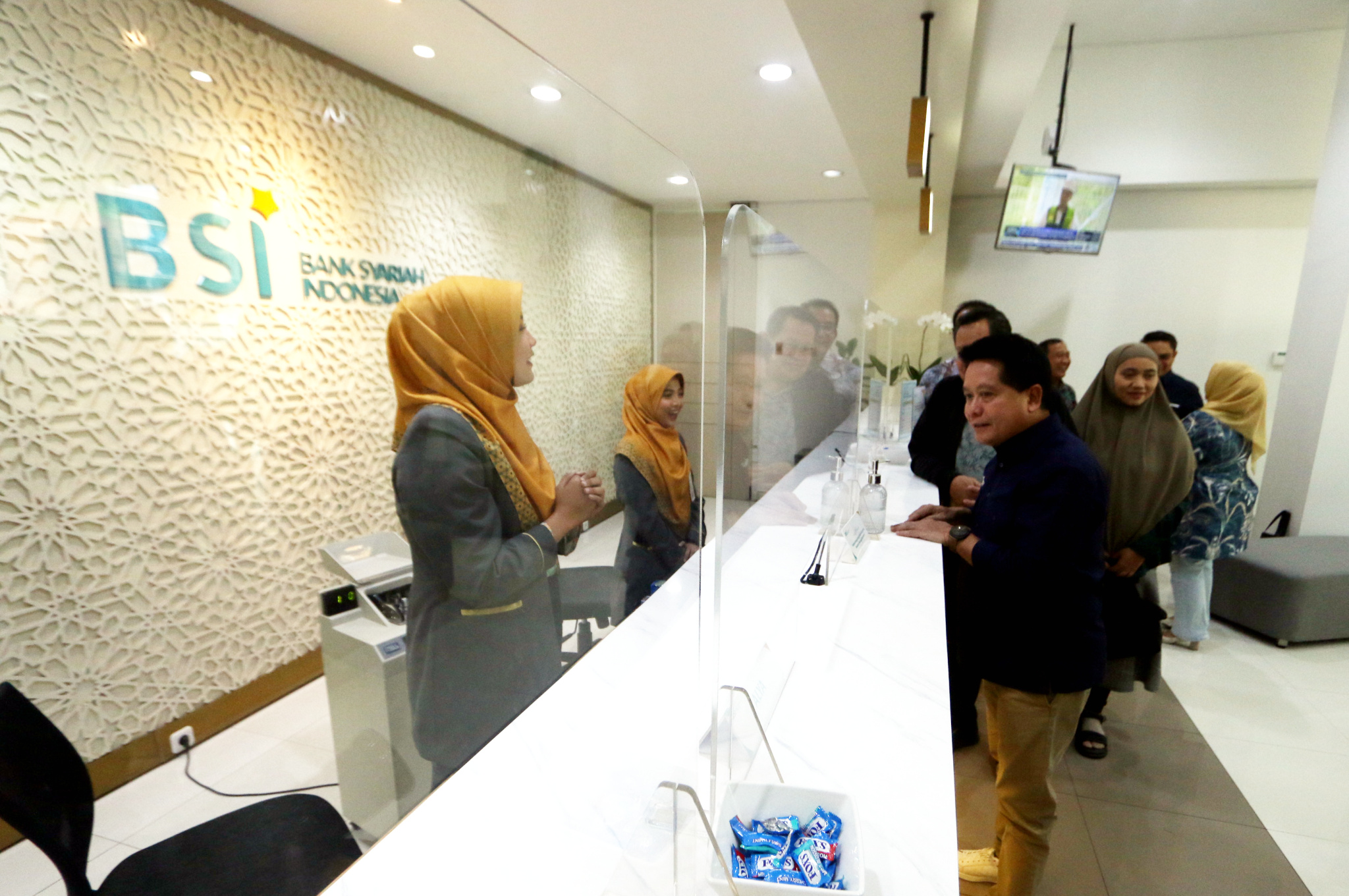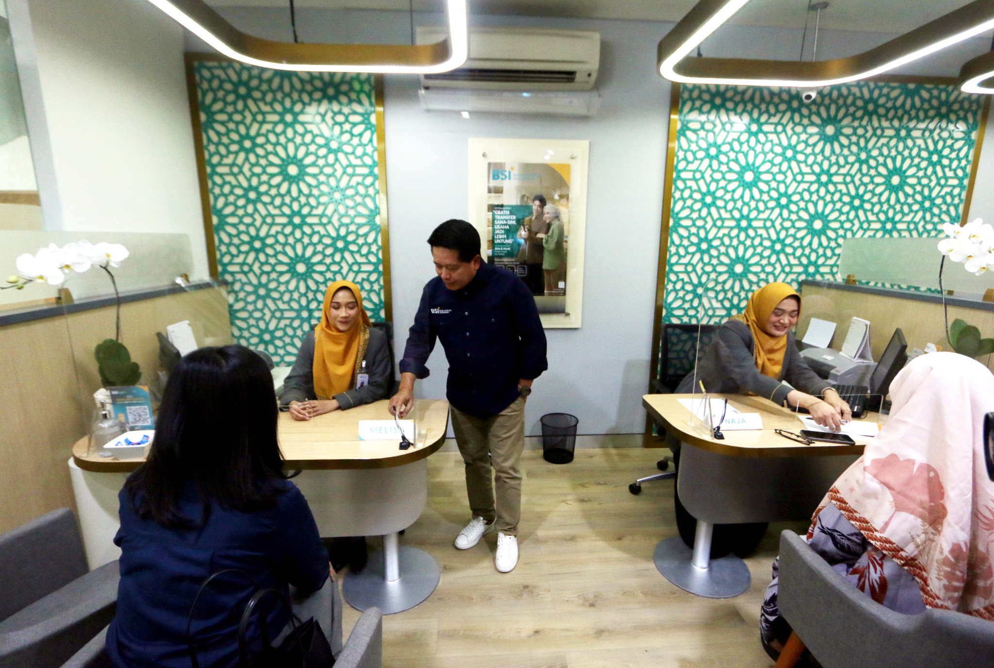 Direktur Utama BSI Hery Gunardi sedang berbincang dengan nasabah di Kantor Cabang BSI Mayestik Jakarta Selatan. Hal ini dilakukan untuk memastikan bahwa seluruh cabang perseroan dapat memberikan pelayanan yang optimal kepada nasabah periode jelang akhir Tahun di Jakarta,Kamis (28/12). BSI berkomitmen kuat untuk memberikan pelayanan terbaik kepada nasabah di momen-momen penting seperti akhir tahun dan tahun baru.