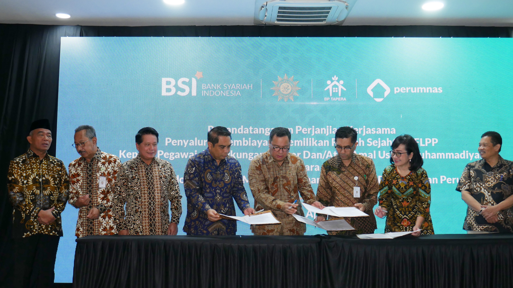 PT Bank Syariah Indonesia Tbk (BSI), PP Muhammadiyah, Badan Pengelola Tabungan Perumahan Rakyat (BP Tapera), dan Perum Pembangunan Perumahan Nasional (Perumnas) menjalin kerja sama penyaluran pembiayaan kepemilikan rumah bersubsidi KPR Sejahtera FLPP kepada pegawai di lingkungan Amal Usaha Muhammadiyah.